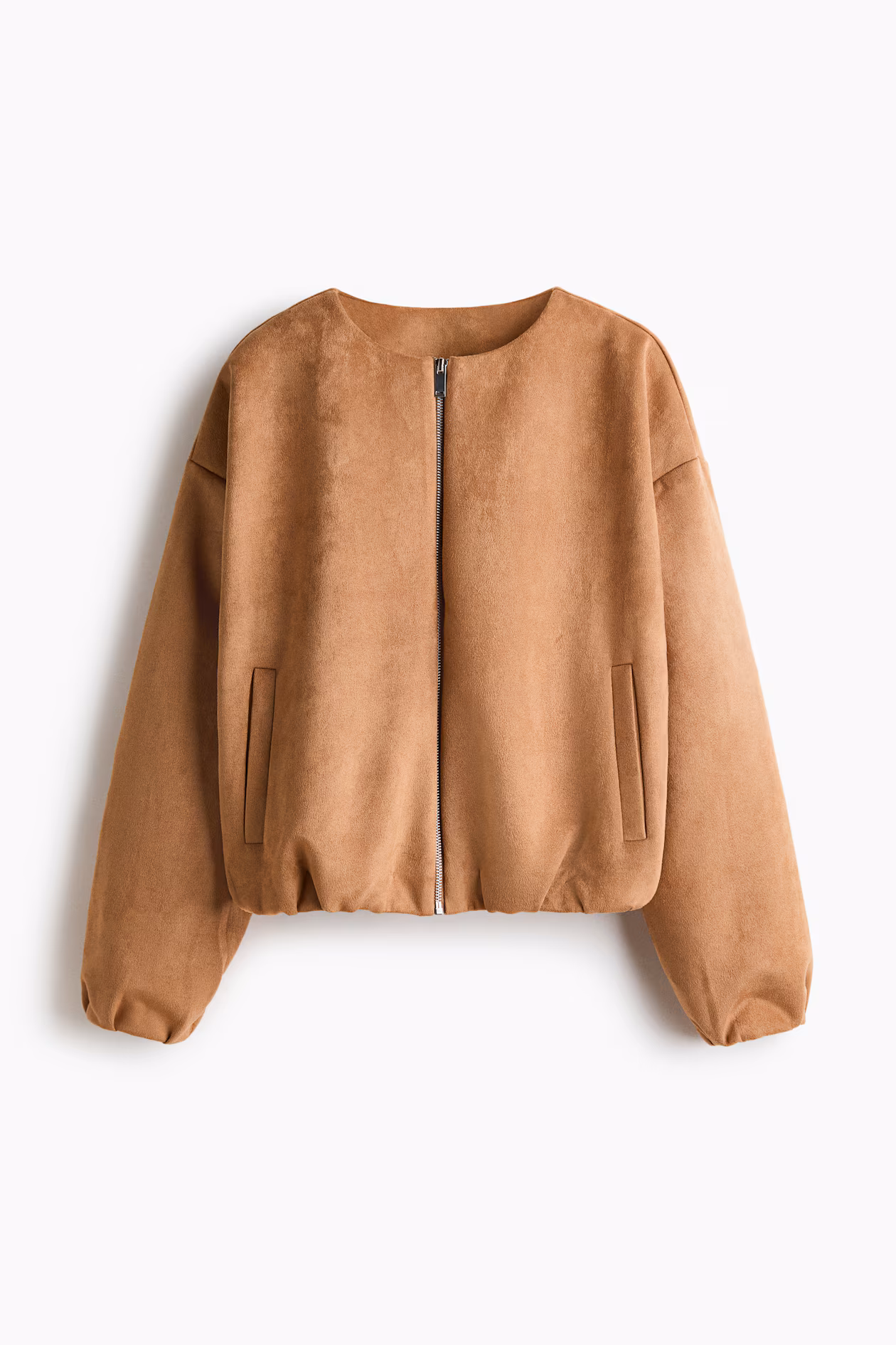 Oversized jacket in thick jersey. Round neckline, zipper at front, and welt side pockets. Dropped shoulders, long sleeves, and narrow elastic at cuffs and hem. Unlined.