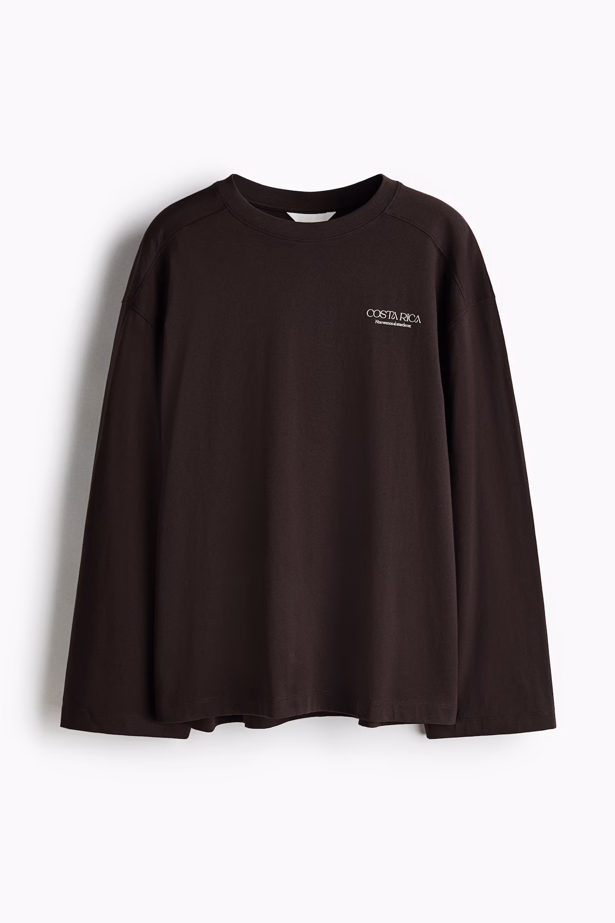 Oversized top in soft cotton jersey with a printed motif. Ribbed round neckline, forward-facing shoulder seams, dropped shoulders, and long sleeves.