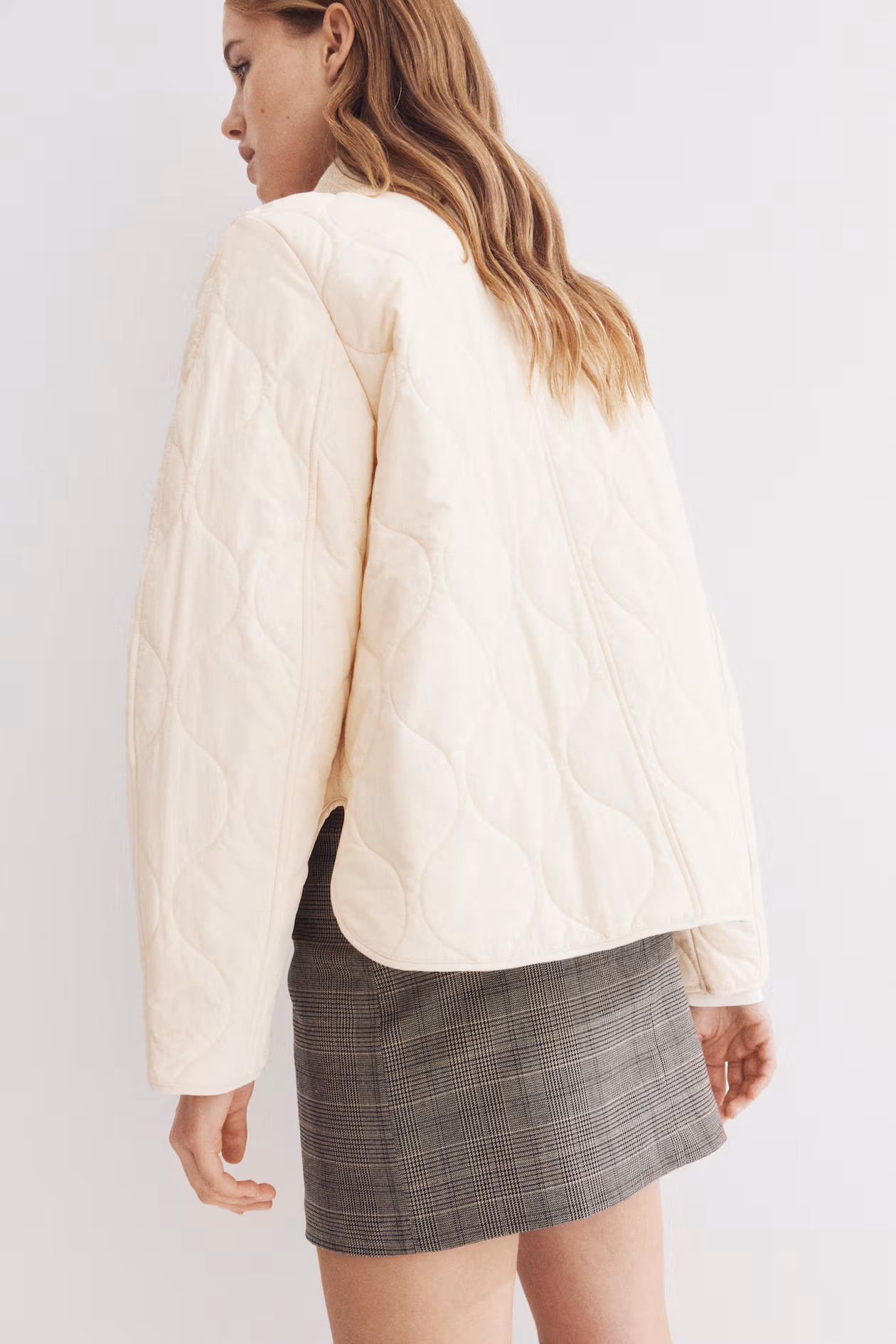 Oversized, lightly padded jacket in quilted nylon. Ribbed stand-up collar, zipper at front, and patch front pockets with flap. Straight-cut hem with curved side vents. Lined.