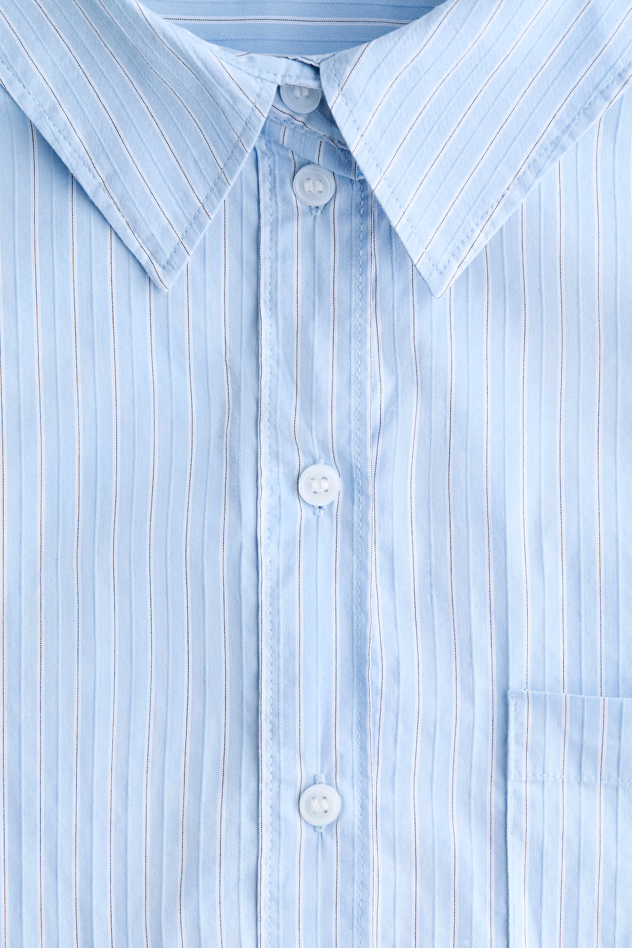 Oversized shirt in woven fabric. Collar, buttons at front, a patch chest pocket, and a yoke at back with box pleat. Gently dropped shoulders, long sleeves, sleeve placket with link button, and button at cuffs. Straight-cut hem with rounded side vents.