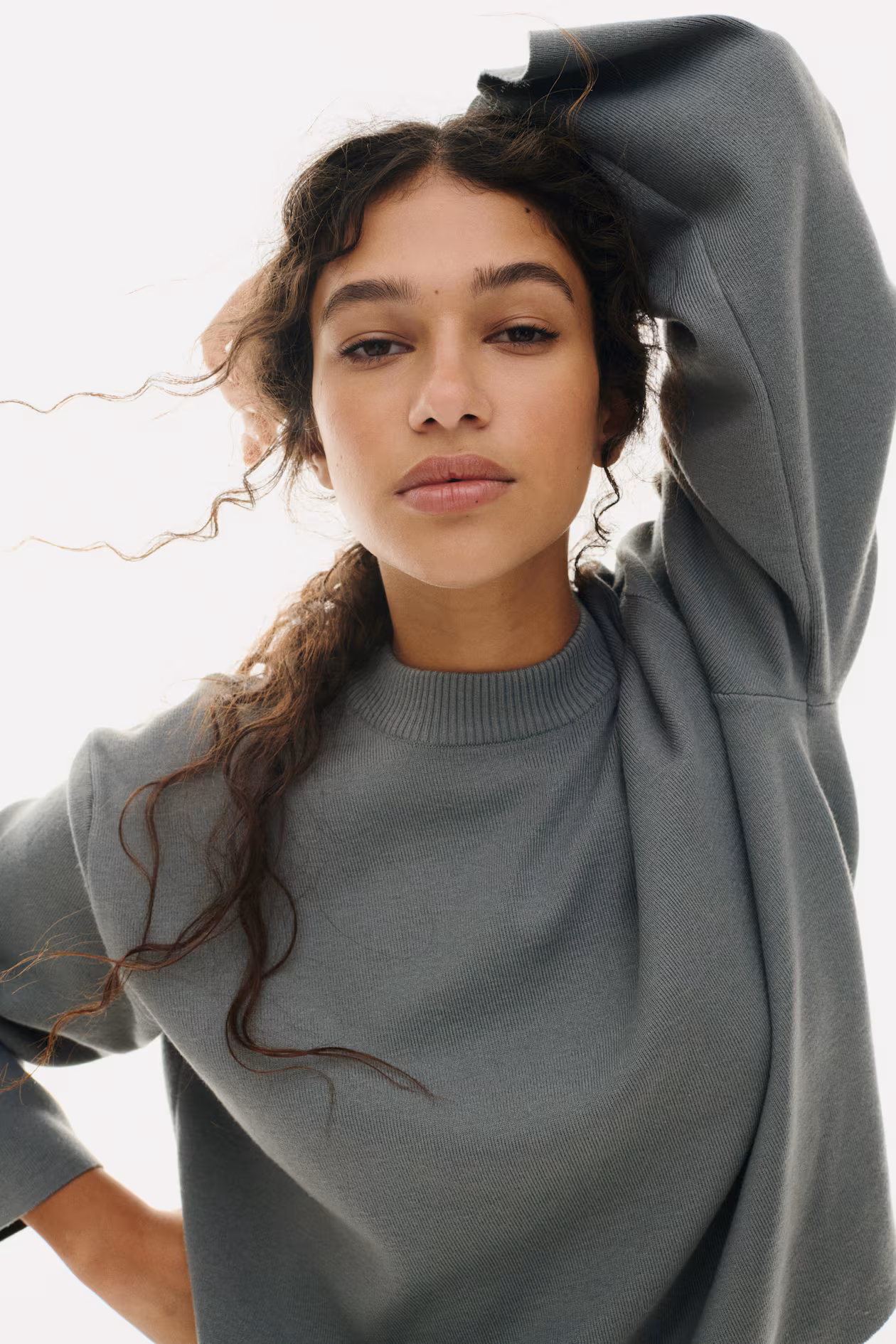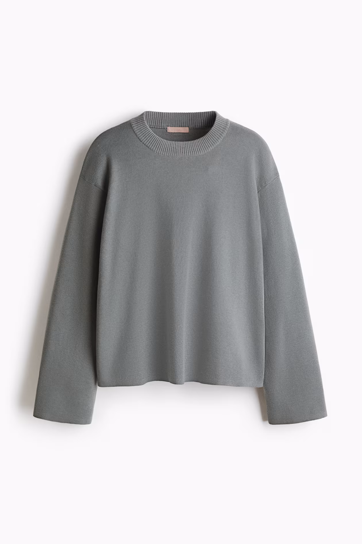 Oversized sweater in a soft, fine knit. Ribbed crew neck and long, gently flared sleeves.