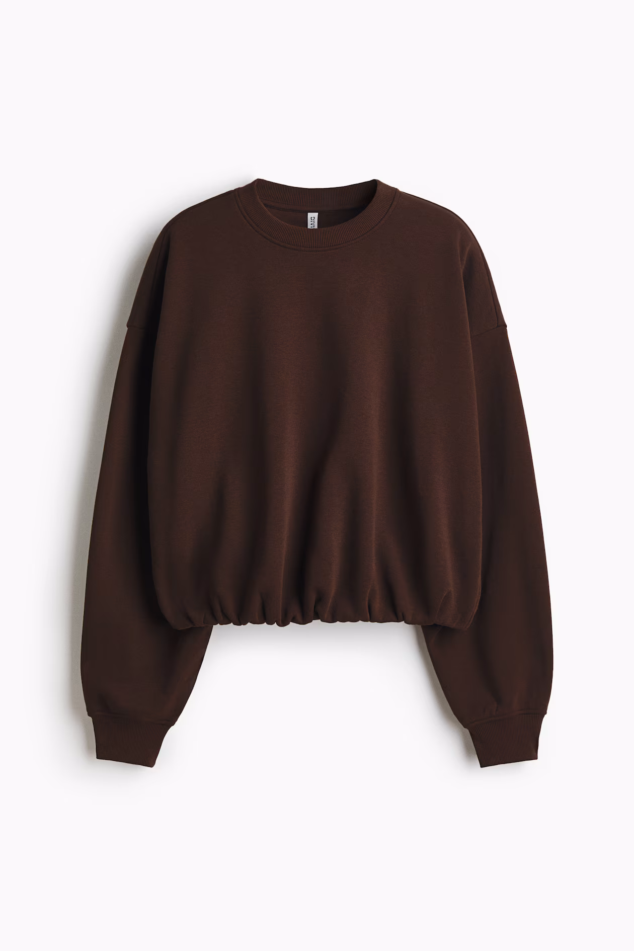 Oversized sweatshirt with a soft, brushed inside. Ribbed round neckline, dropped shoulders, and long sleeves with ribbed cuffs. Gathered elastic at hem for a puffy silhouette.