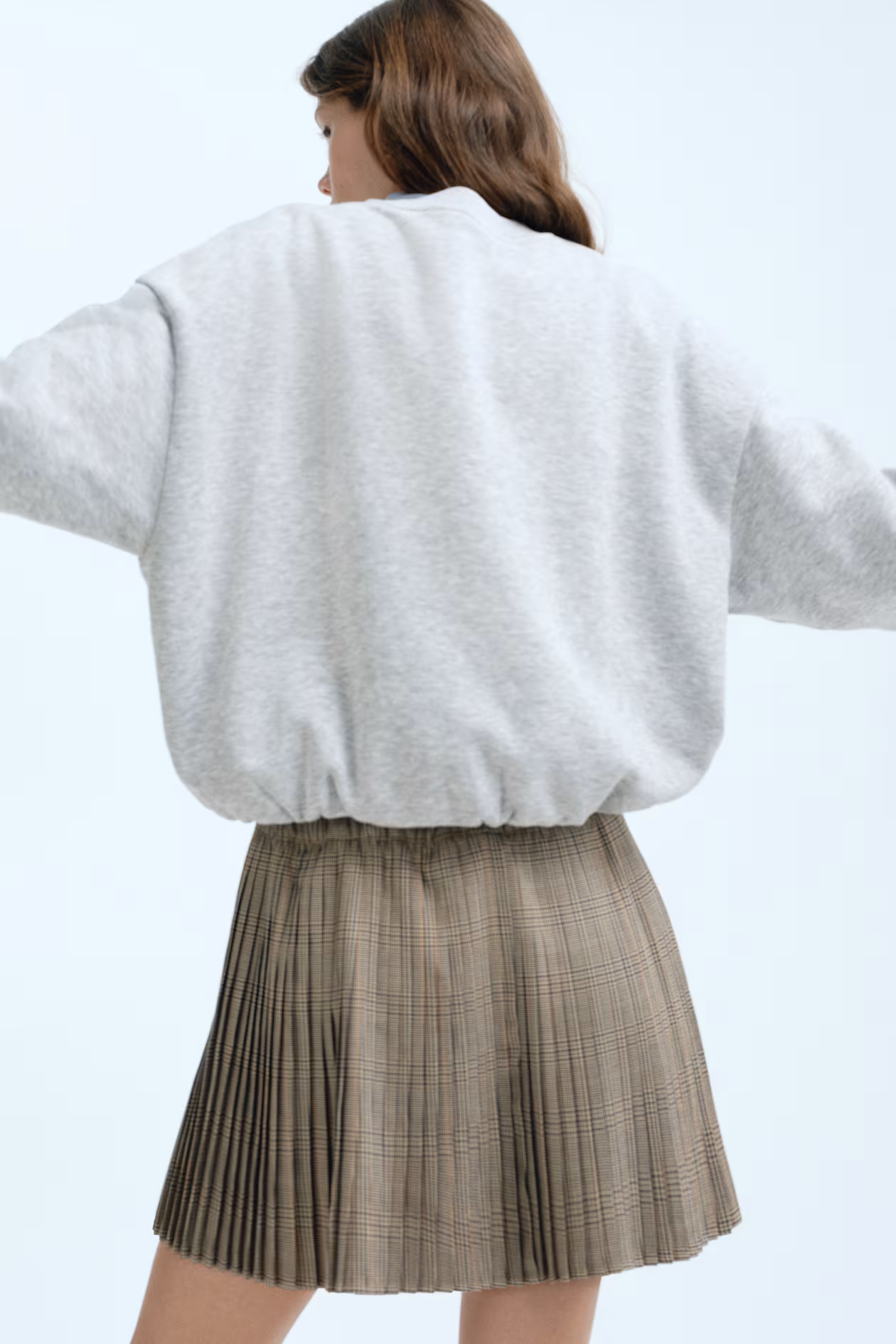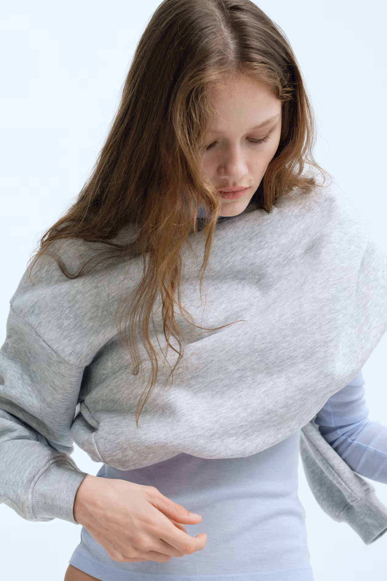 Oversized sweatshirt with a soft, brushed inside. Ribbed round neckline, dropped shoulders, and long sleeves with ribbed cuffs. Gathered elastic at hem for a puffy silhouette.