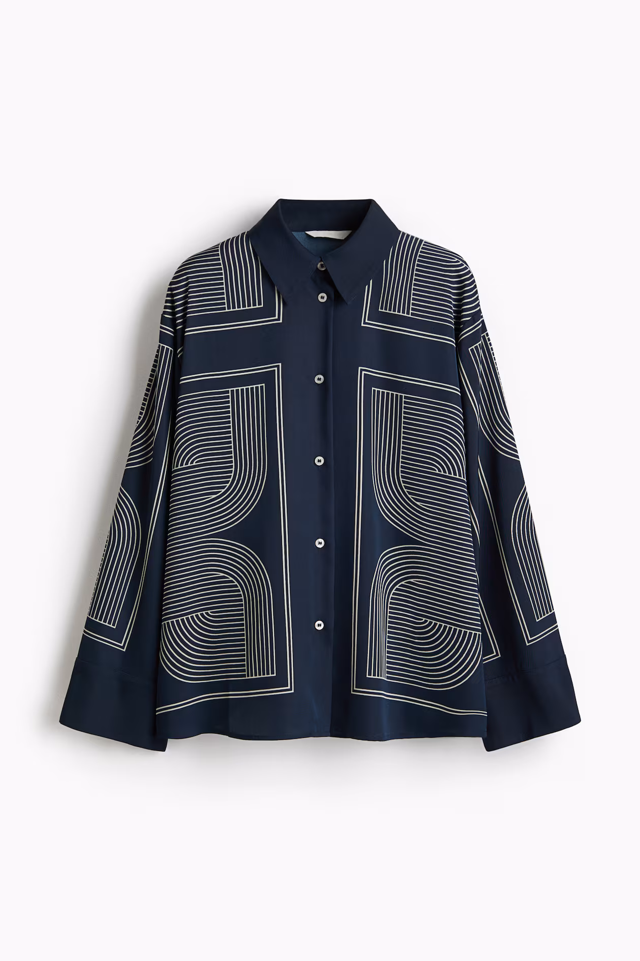 Oversized shirt in twill. Collar, buttons at of front, dropped shoulders, long sleeves, sleeve placket with link button, and button at cuffs. Straight-cut hem.
