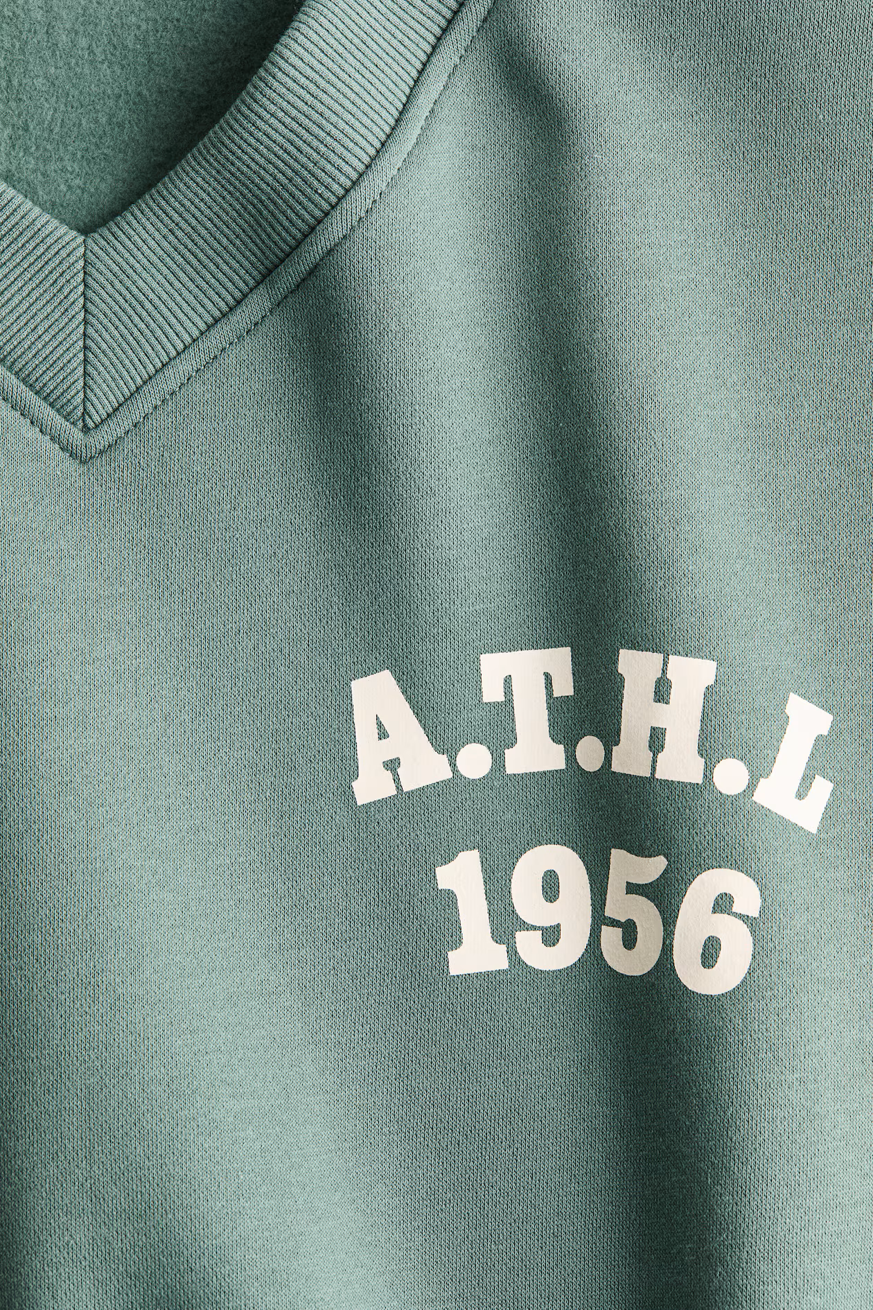 Oversized sweatshirt with a printed motif at front and soft, brushed inside. V-neck, dropped shoulders, and long sleeves. Ribbing at neckline, cuffs, and hem.