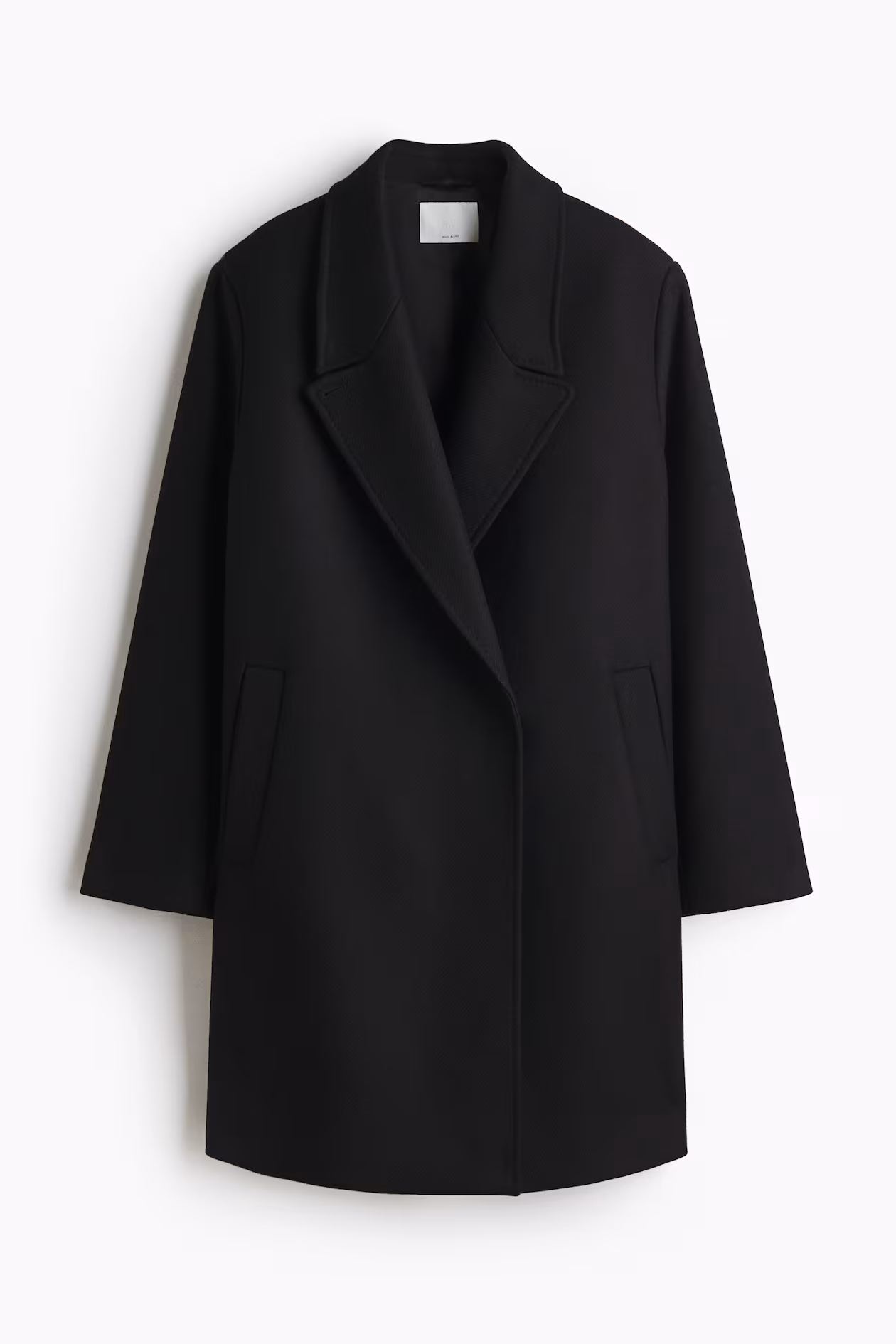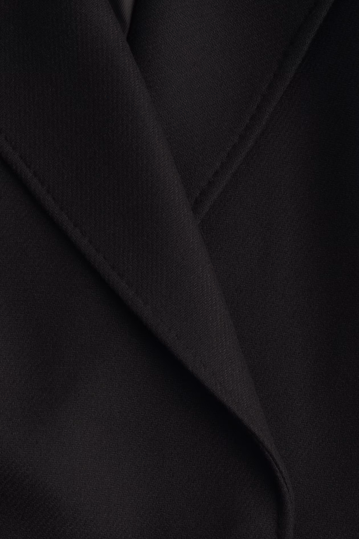 Oversized, double-breasted, knee-length coat in a felted wool blend from Italian fabric makers Nova Fides. Pointed lapels, concealed snap fasteners at front, and welt side pockets. Shoulder pads for a defined silhouette. Vent at back. Lined.