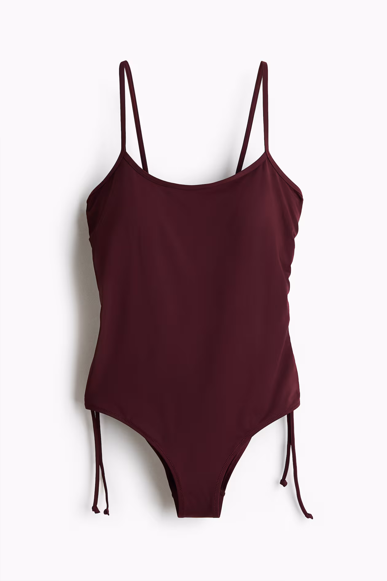 Fully lined swimsuit. Lined cups with removable inserts for shaping and good support, drawstring at sides for a ruched effect, and high-cut legs. Cutaway coverage at back.