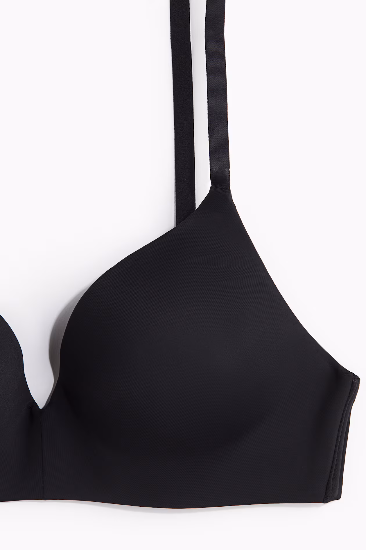 Soft-cup bra in microfiber. Adjustable shoulder straps, padded cups for shaping and good support, and hook-and-eye fasteners at back.