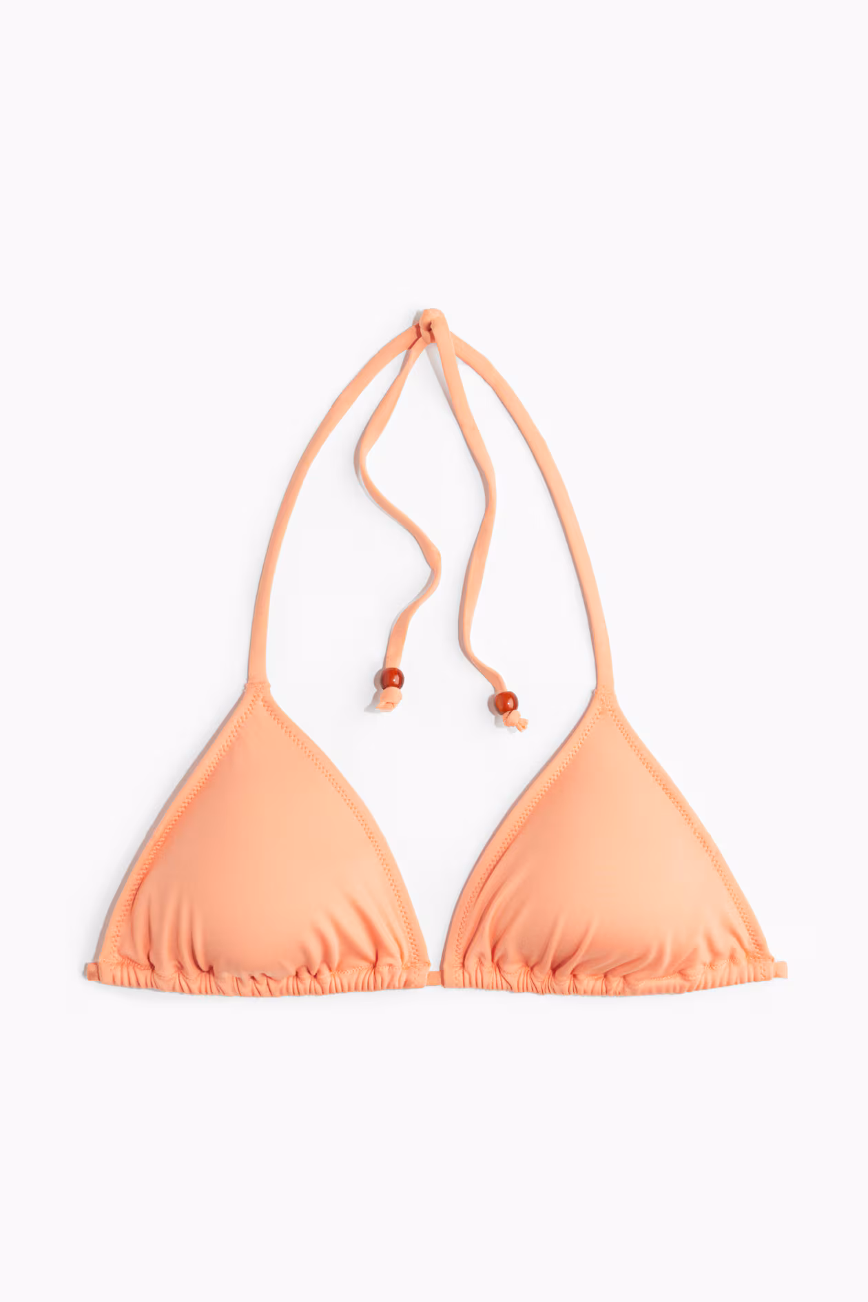 Lined triangle bikini top. Cups with removable inserts for shaping and good support. Ties at back of neck and at back.