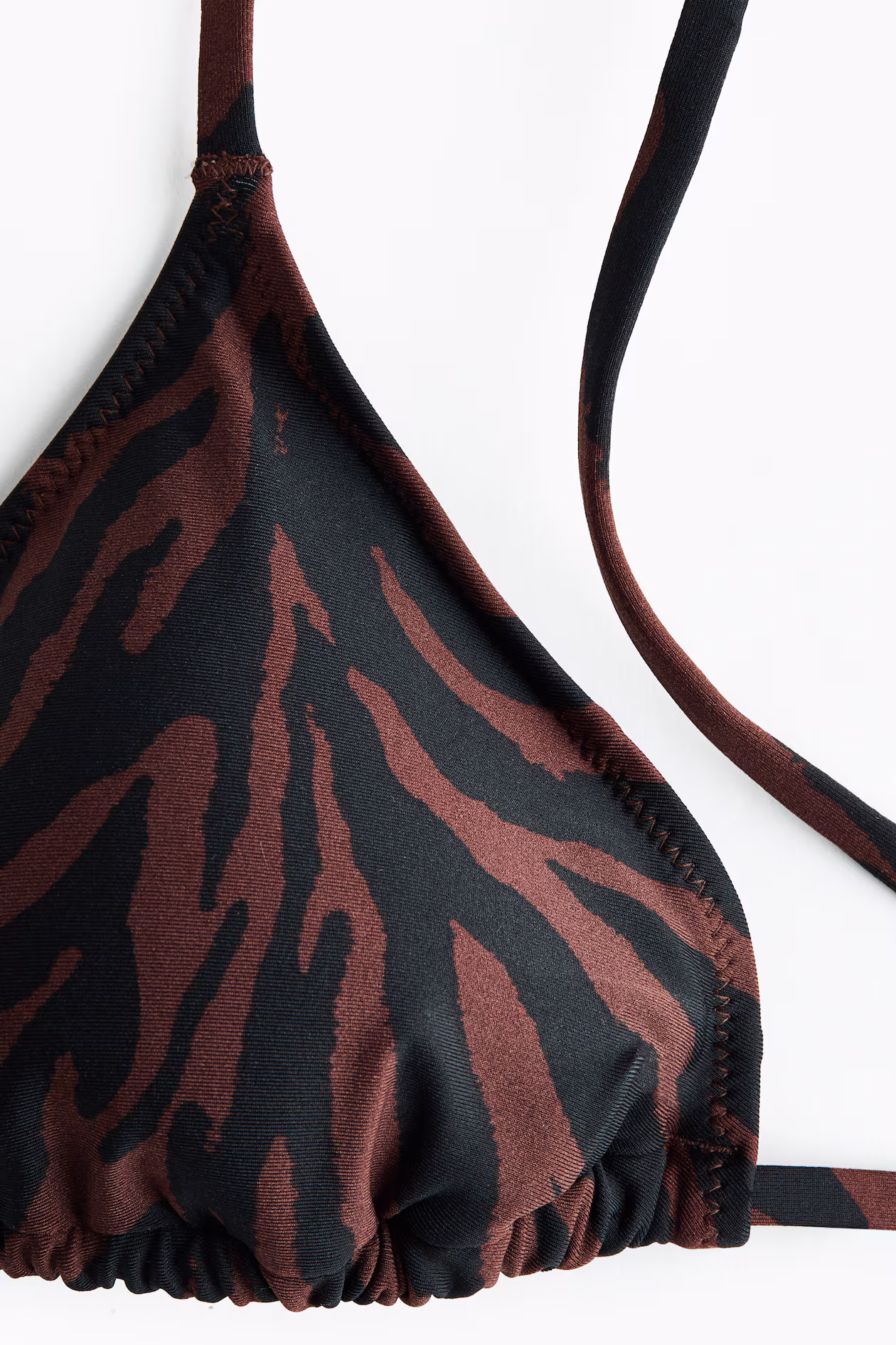 Lined triangle bikini top. Cups with removable inserts for shaping and good support. Ties at back of neck and at back.