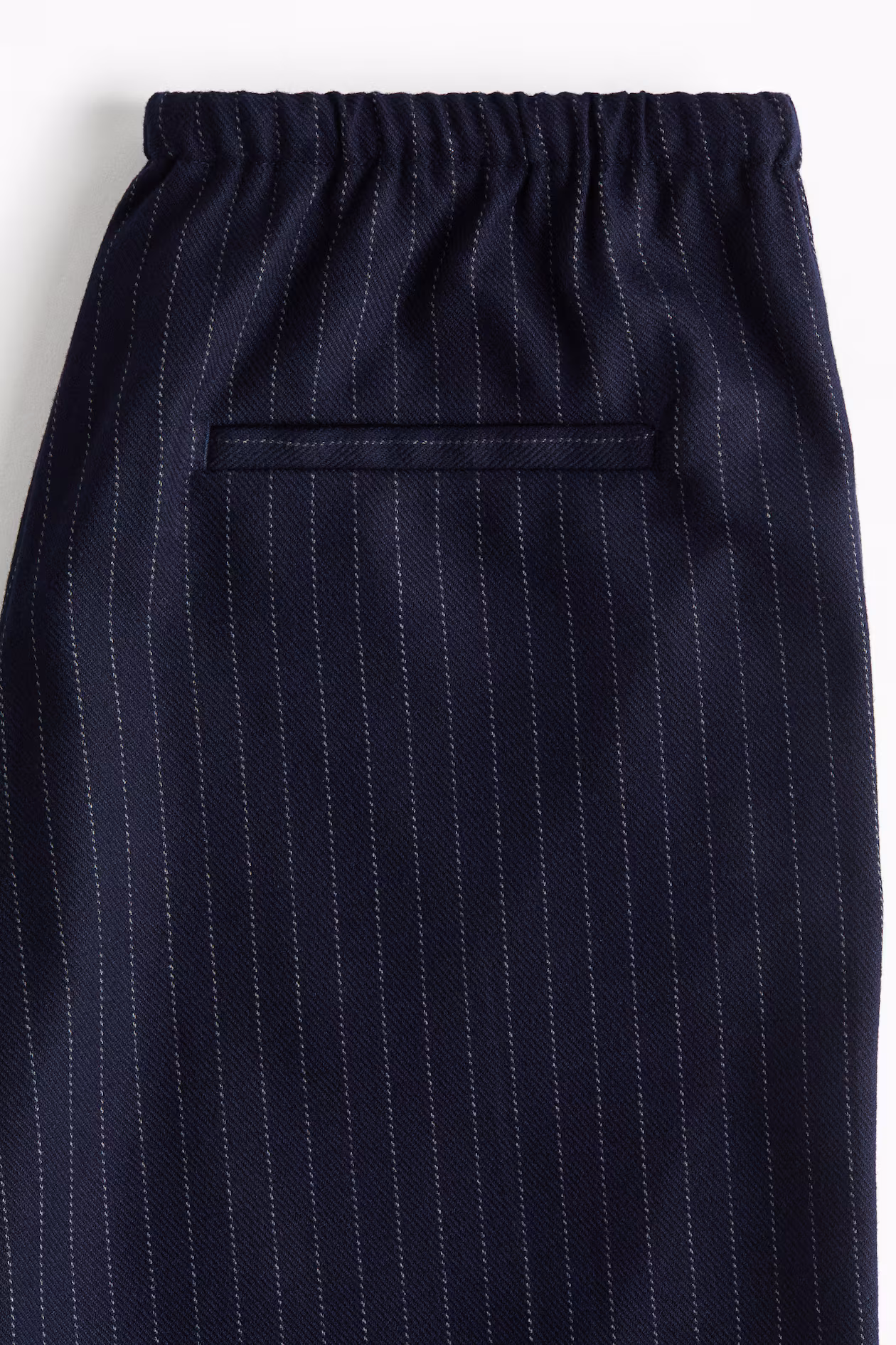 Loose-fit pants in herringbone-weave fabric. Elasticized, drawstring waistband, discreet side pockets, and mock welt back pockets. Straight legs.
