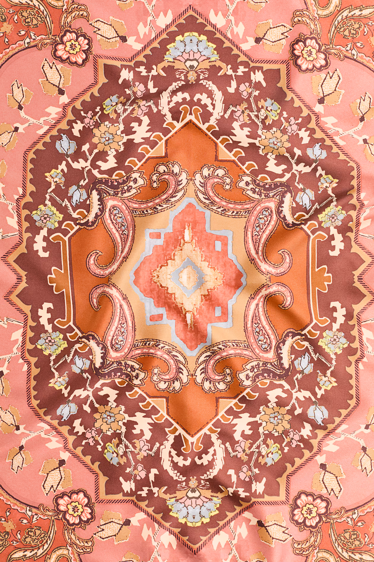 Orange/dusty red/pink/brown, Paisley-patterned