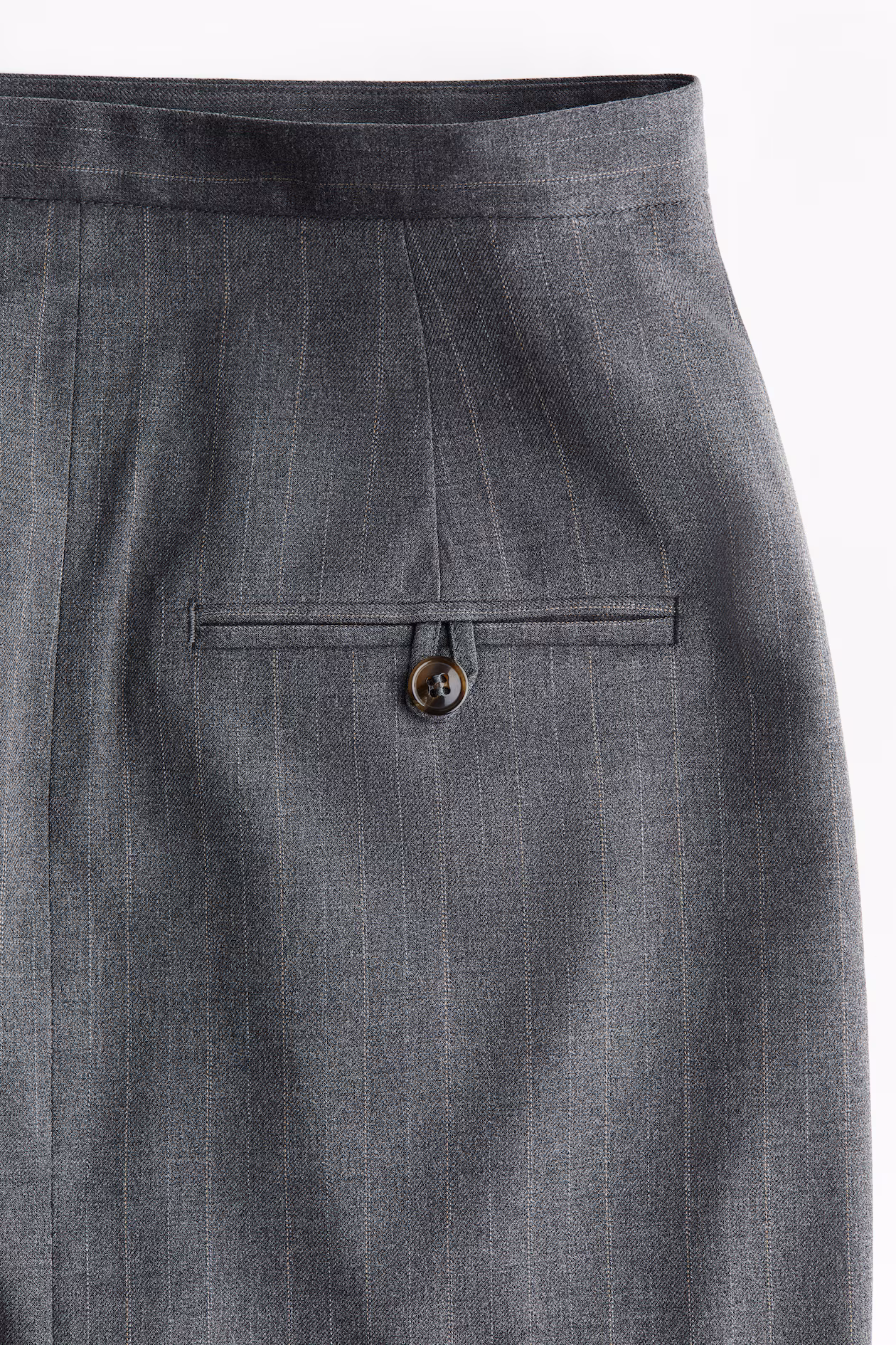 Knee-length skirt in woven fabric. Concealed zipper at one side, welt back pockets with button, and a straight-cut hem with a high slit at front. Lined.