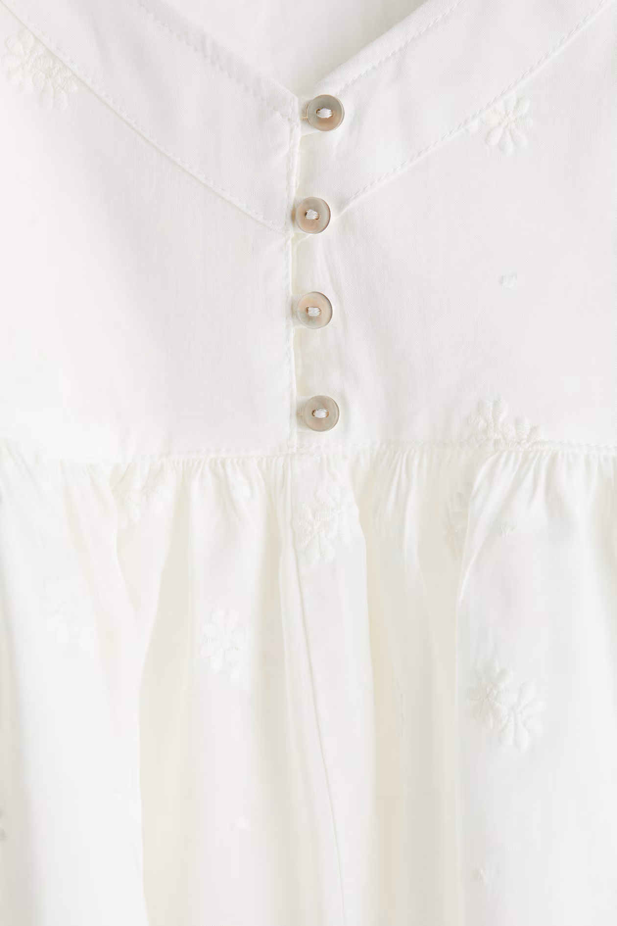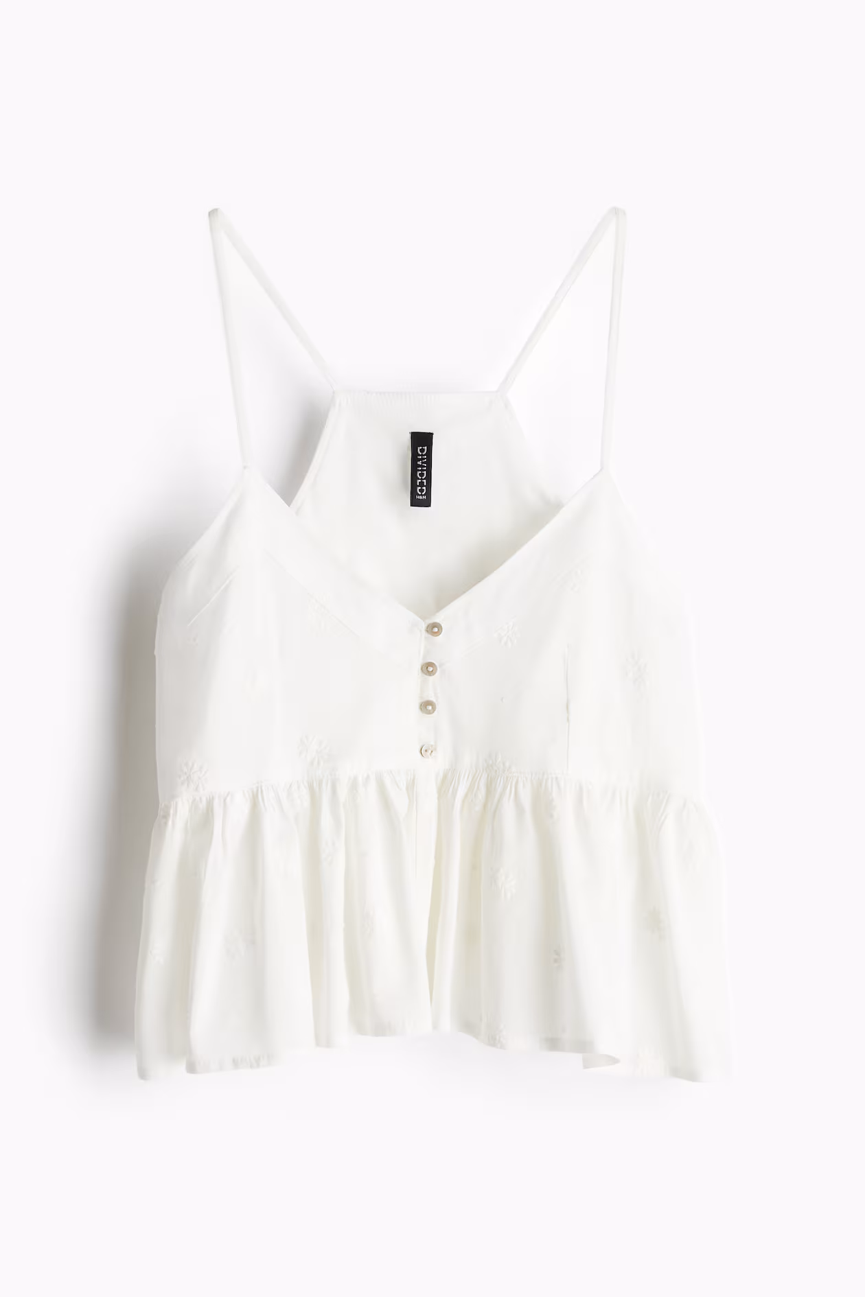 Camisole top in an airy, woven viscose and cotton blend. V-neck, opening at top with buttons, and narrow cut at back. Gathered seam below bust and a gently flared peplum. Partly lined.