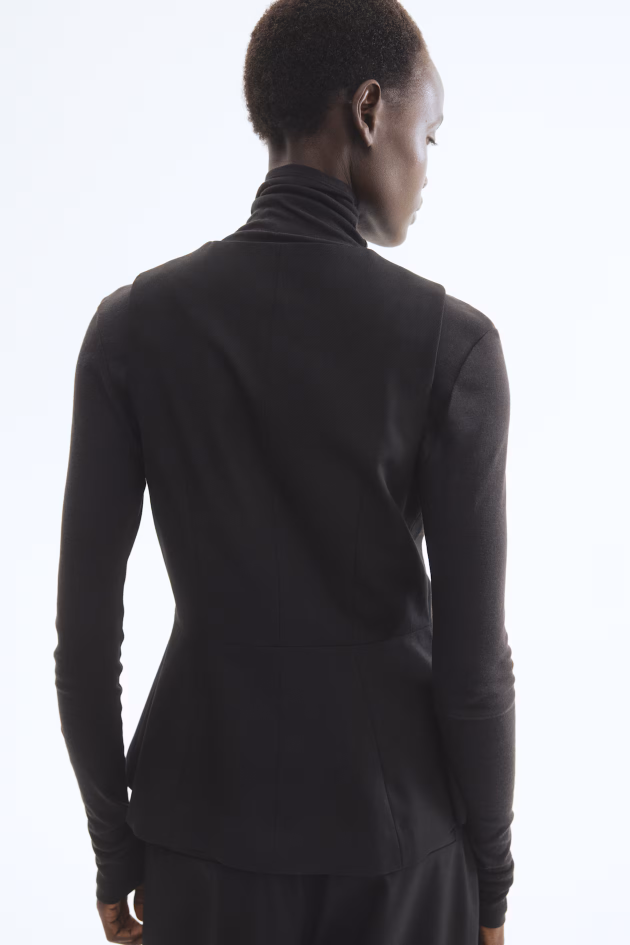 V-neck Vest in woven fabric with buttons at front. Shaping seams at waist and a flared peplum for a tapered silhouette. Lined.