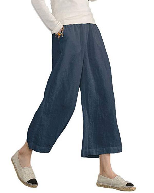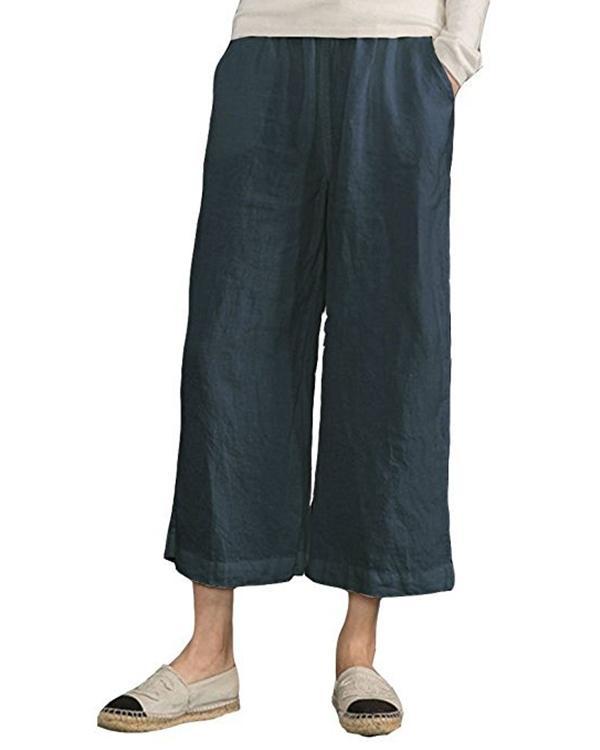 Women Solid Casual Linen Havana Nights Pants