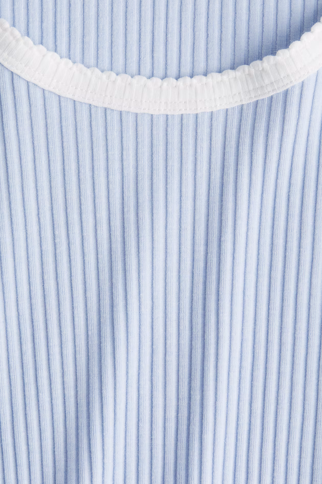 Short, fitted T-shirt in ribbed jersey. Round, low-cut neckline and picot-trimmed edges.