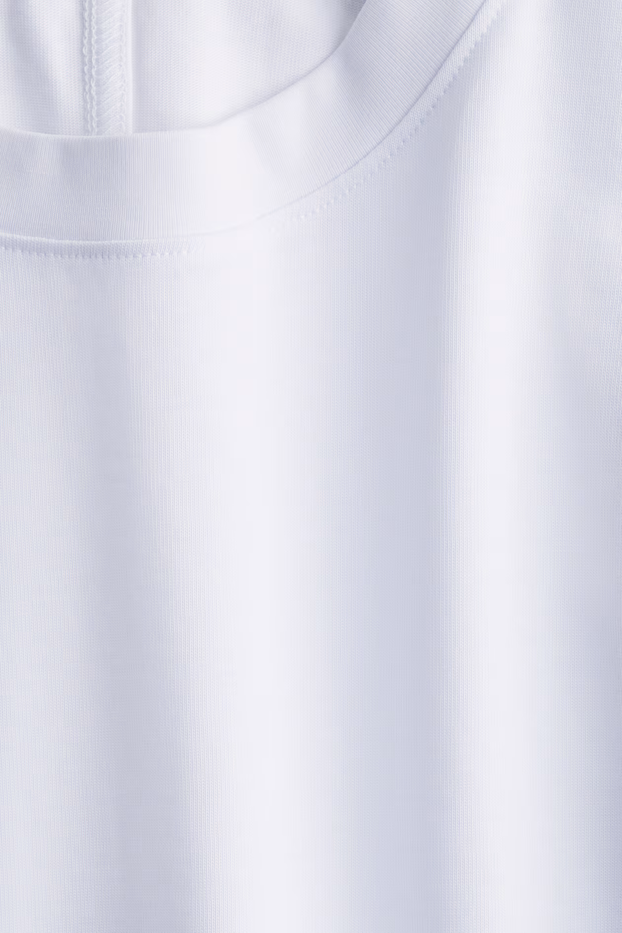 Loose-fit T-shirt in soft pima cotton jersey. Crew neck, elbow-length sleeves, and visible, vertical seam at back. Straight-cut hem.