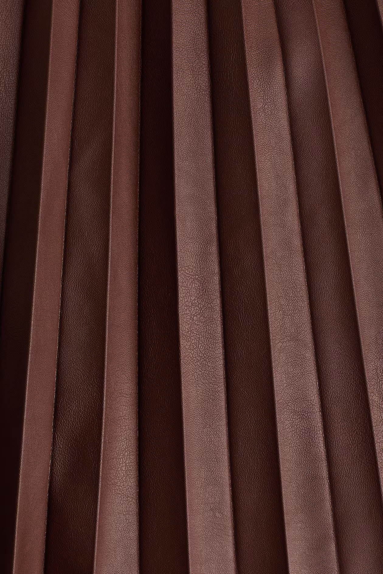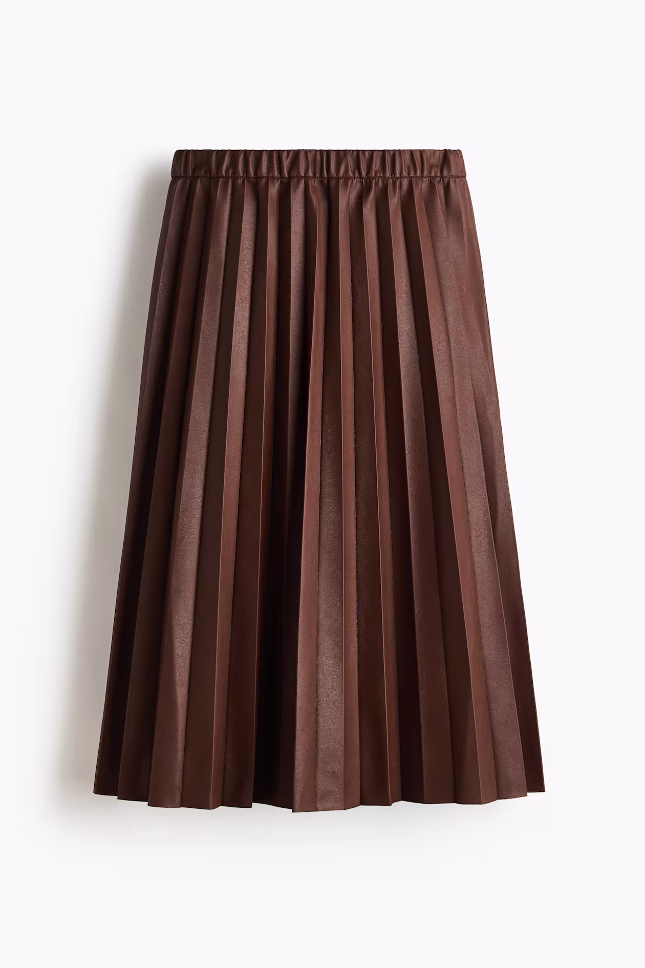 Pleated, calf-length skirt in coated fabric with covered elastic at waistband. Unlined.