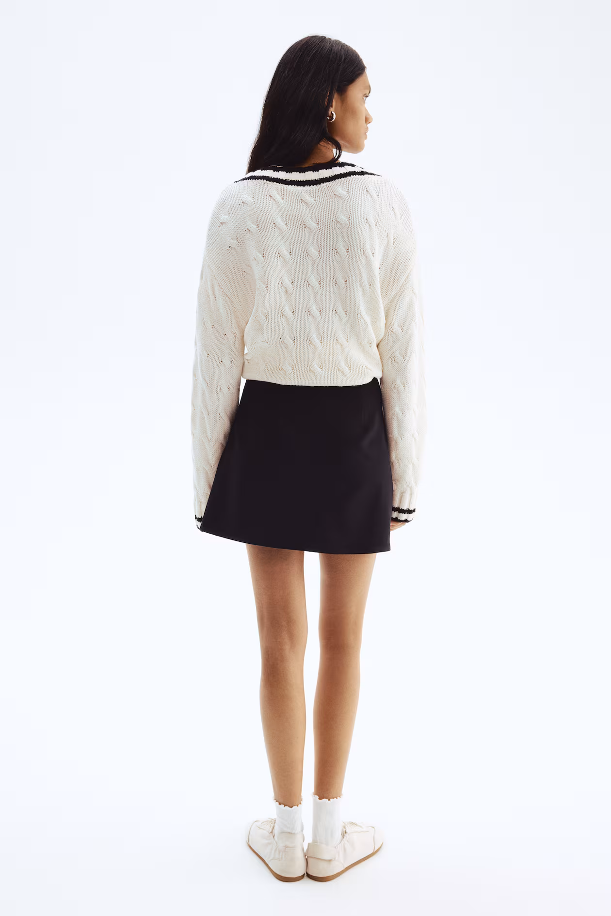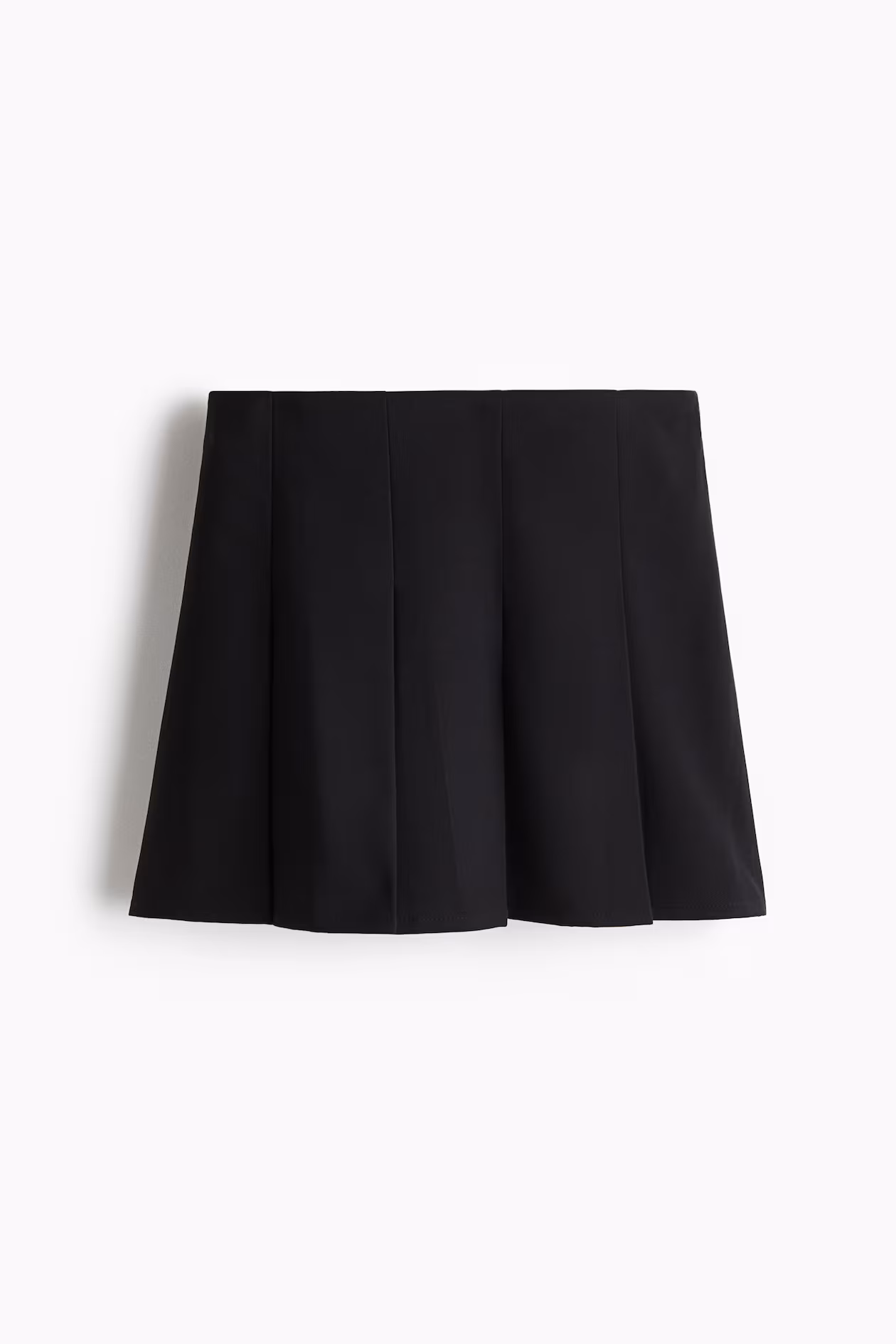 Fitted mini skirt in soft woven fabric with a flattering A-line silhouette. Regular waist, concealed zipper at one side, and knife pleats at front.