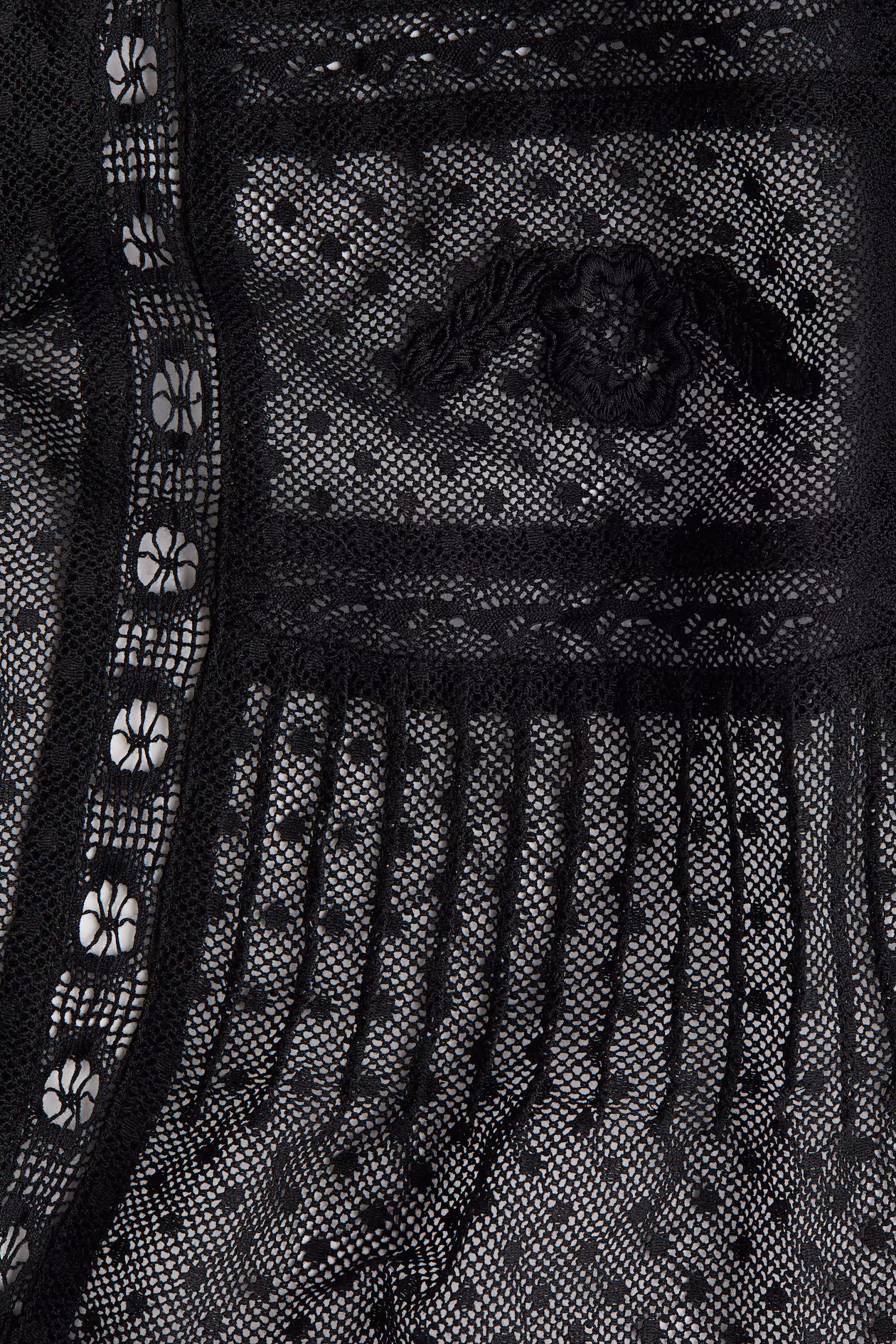 Blouse in plumeti mesh with lace insets, embroidered details, and pintucks. Round neckline, keyhole opening at back with a button, and gathers at sides of waist for a gently flared hem.