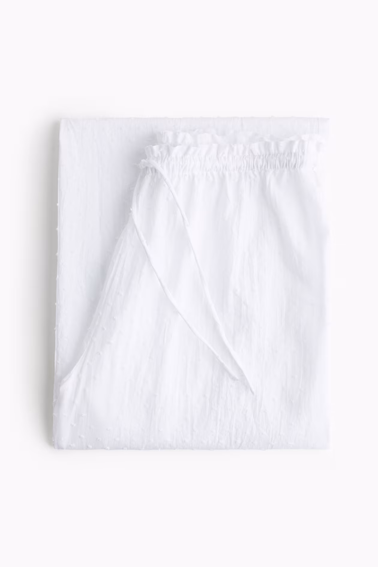 Pajama pants in airy, woven plumeti fabric. Elasticized, drawstring waistband with ruffle trim. Straight legs.