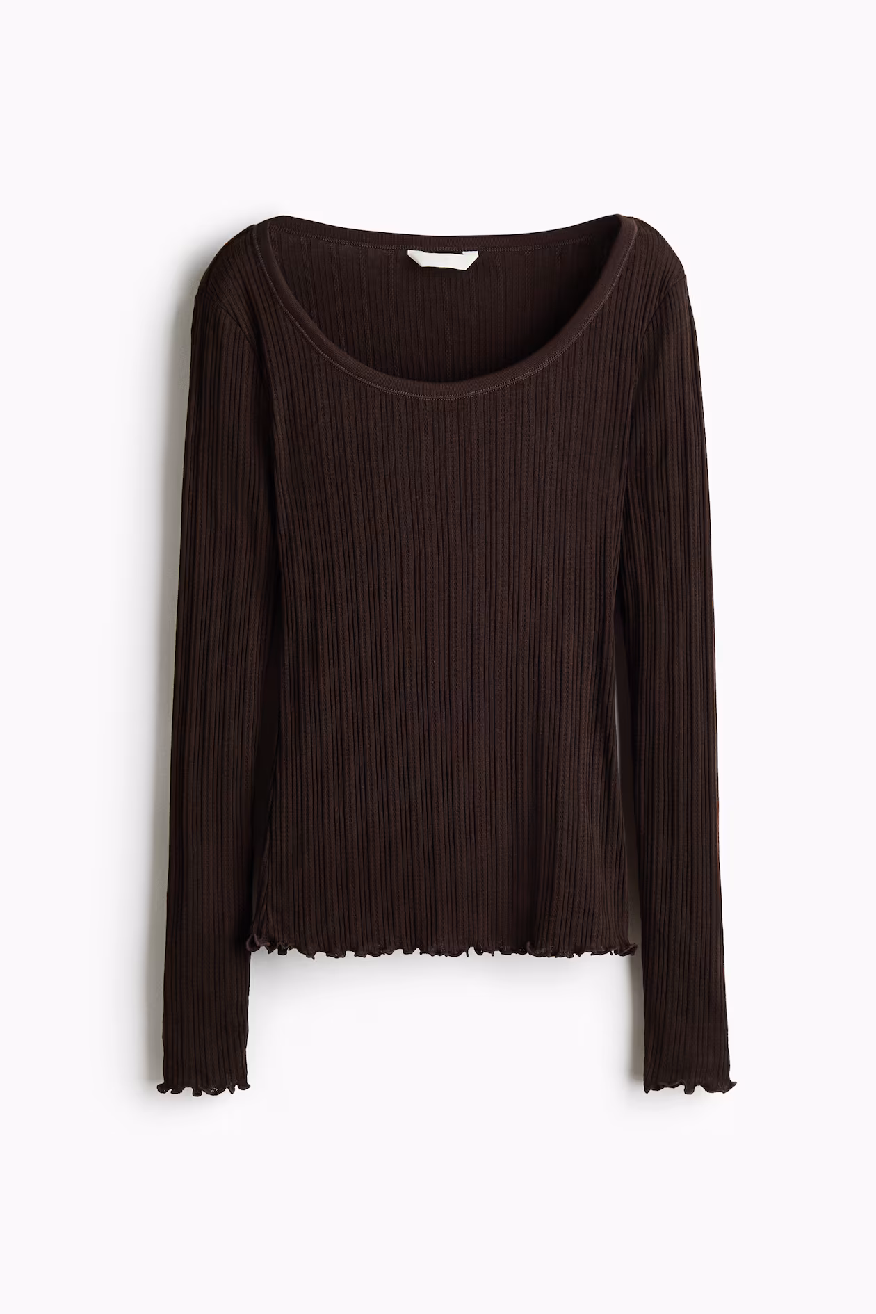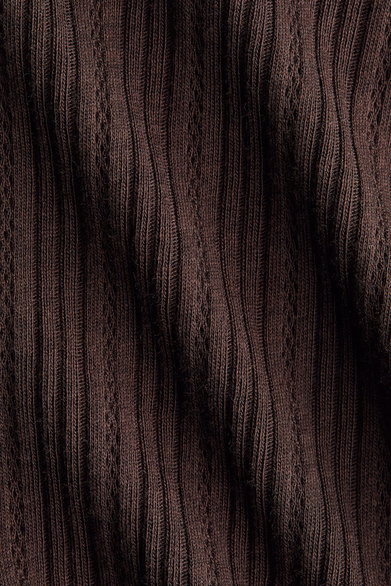 Fitted top in ribbed pointelle jersey. Scoop neck, long sleeves, and overlocked edge at cuffs and hem.