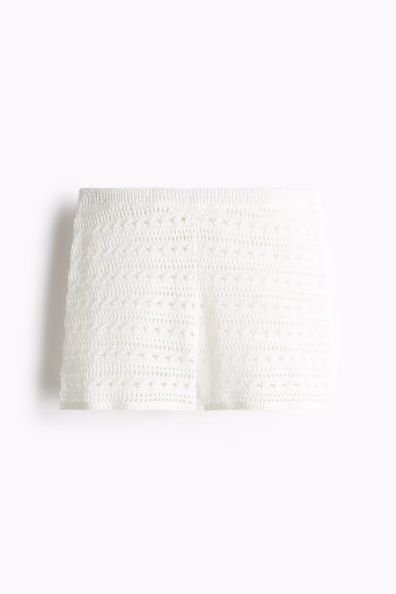 Fitted shorts in a soft pointelle knit. Ribbed, elasticized waistband and narrow ribbing at hems.