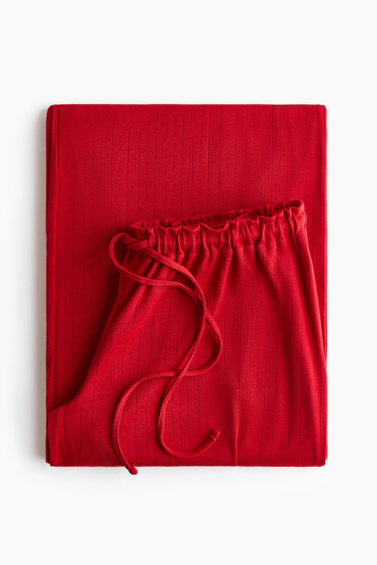 Pajama pants in soft pointelle jersey. Ruffle-trimmed waist with a narrow drawstring and covered elastic at waistband. Gently flared legs.