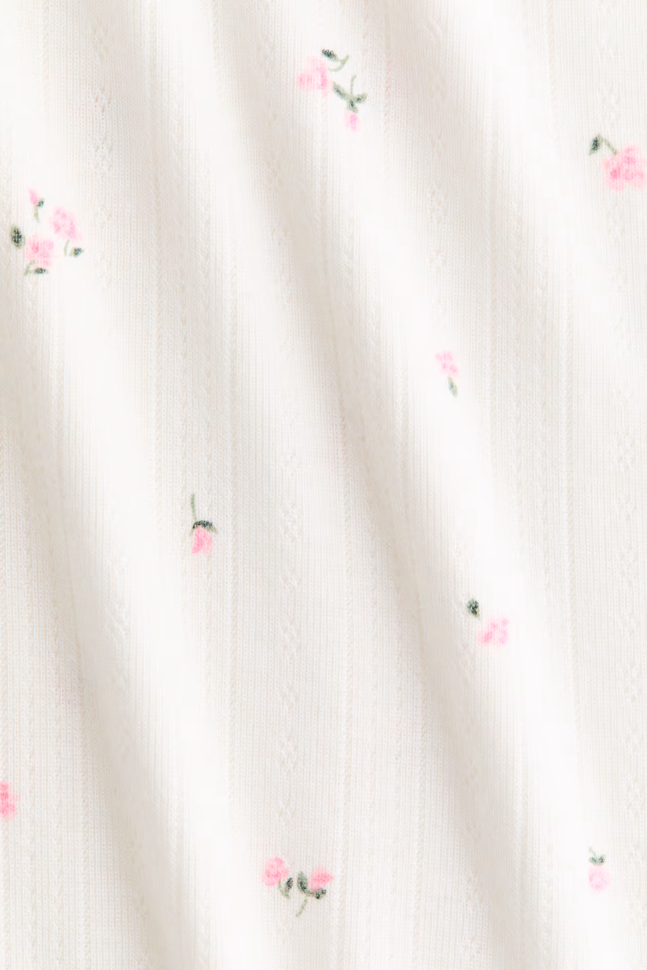 Pajama pants in soft pointelle jersey. Ruffle-trimmed waist with a narrow drawstring and covered elastic at waistband. Gently flared legs.