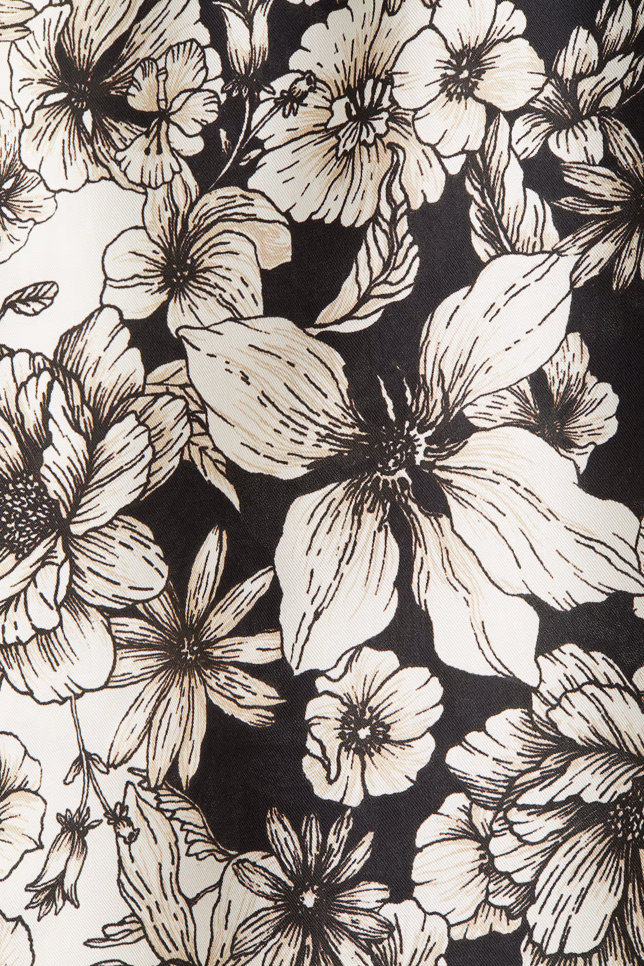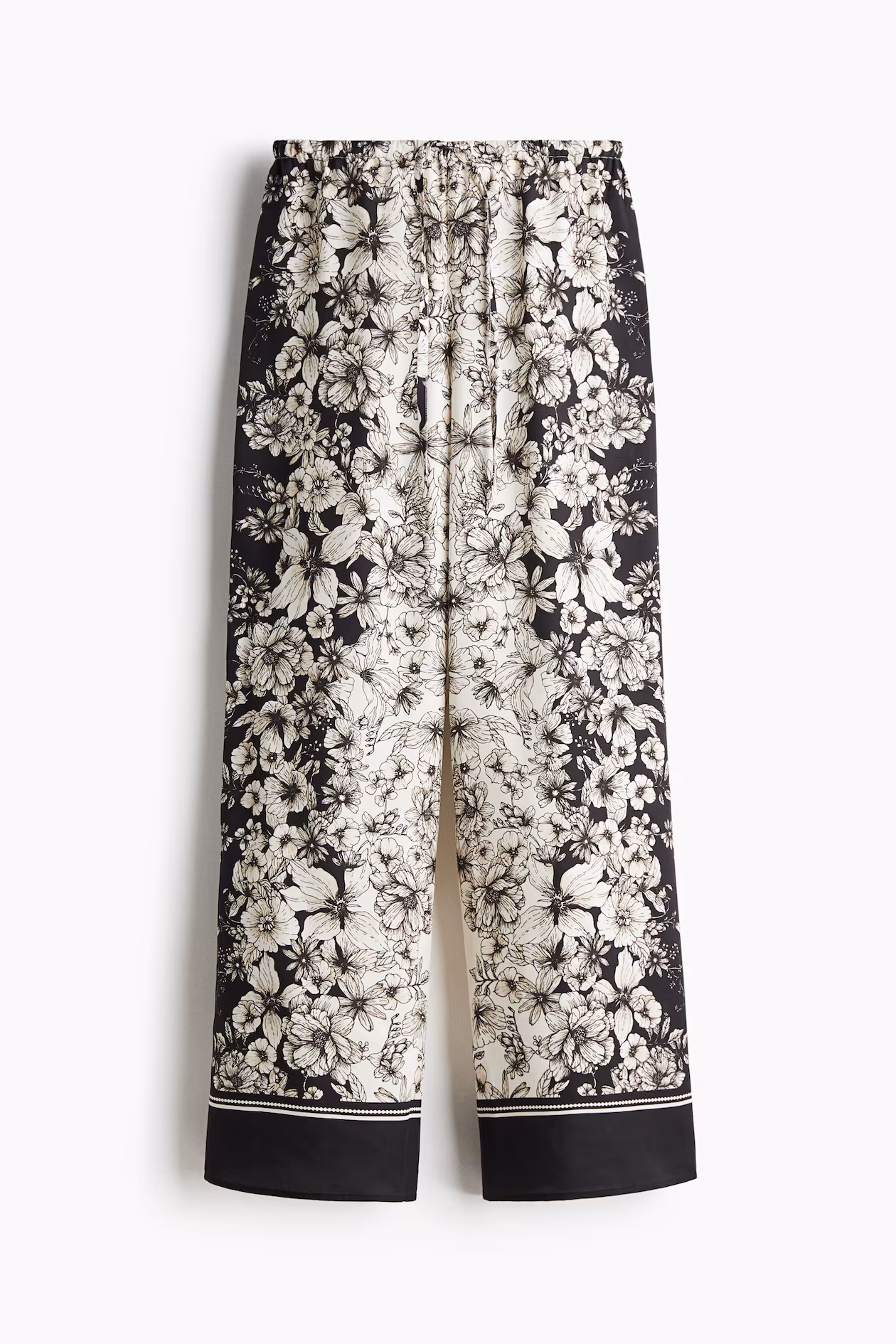 Pants in woven fabric with a printed pattern. High waist, elasticized waistband with a narrow drawstring, and straight legs.