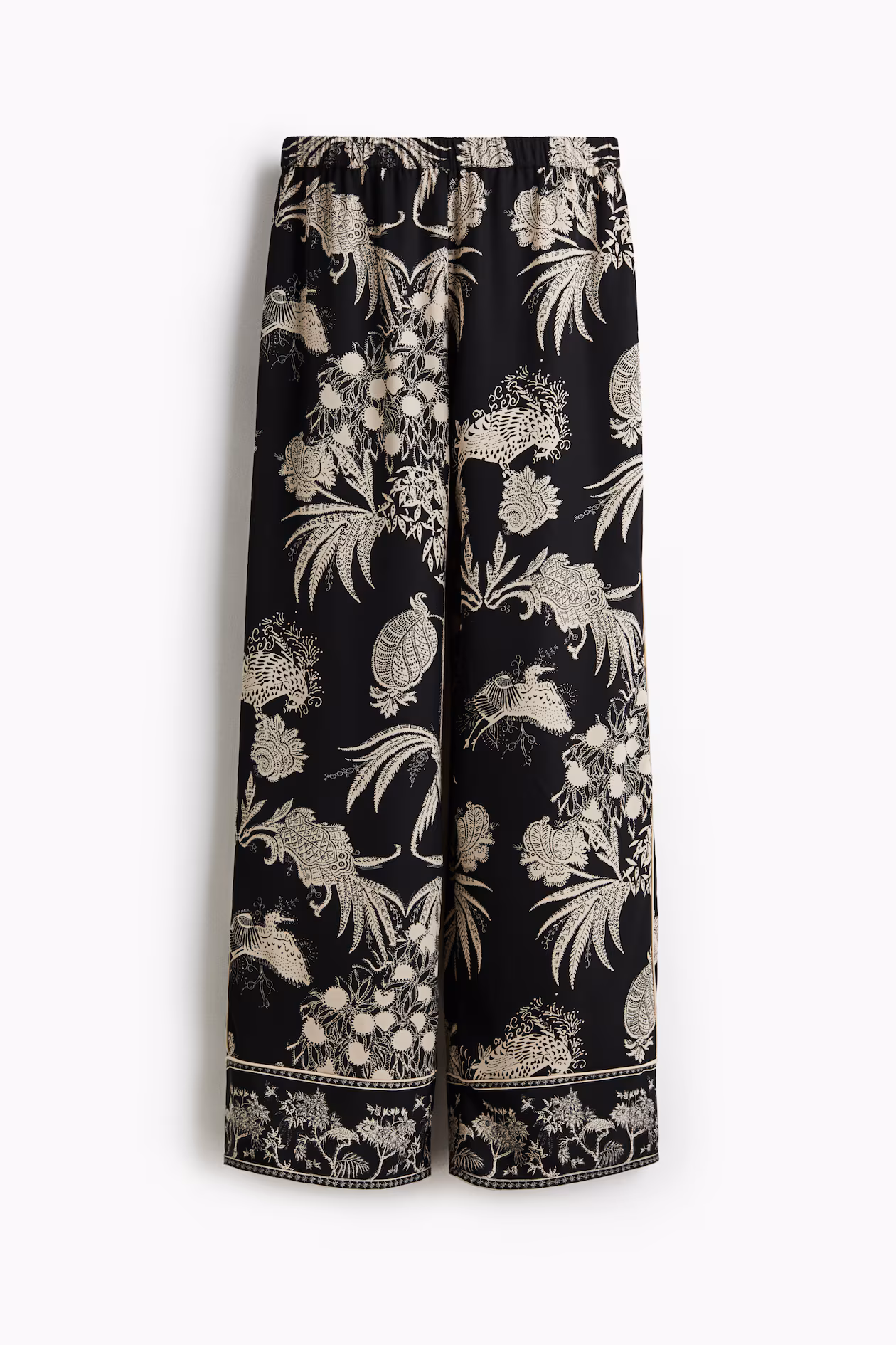 Loose-fit pants in woven fabric with a printed design. Covered elastic at waistband and straight legs.