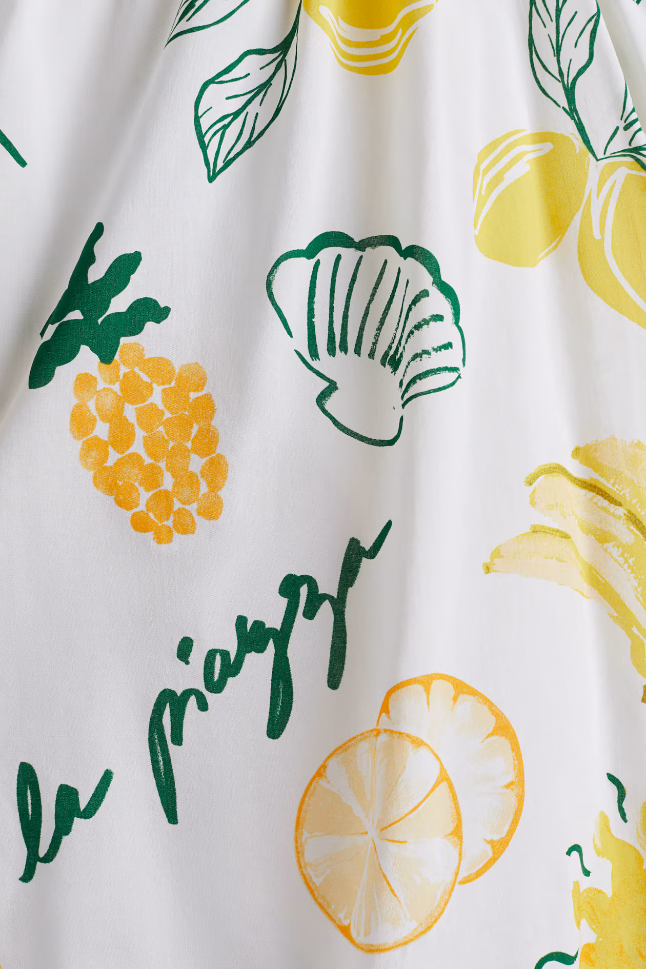 - White/yellow/green, La piazza, Patterned, Bananas, parasols, lemons, seashells, suns, olives