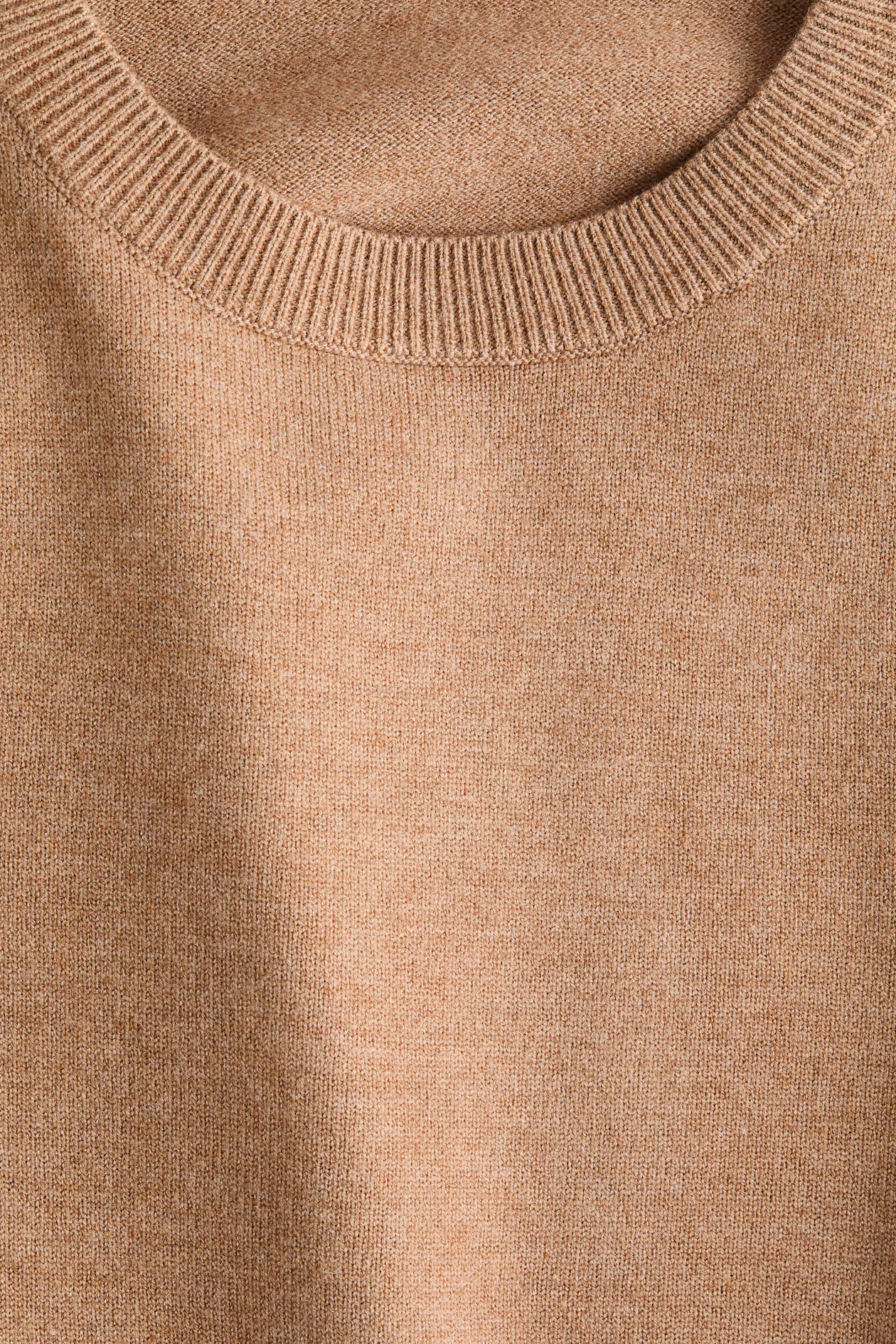Fitted sweater in a soft knit. Round neck, gathers at shoulders, and long puff sleeves. Ribbing at neck, cuffs, and hem.