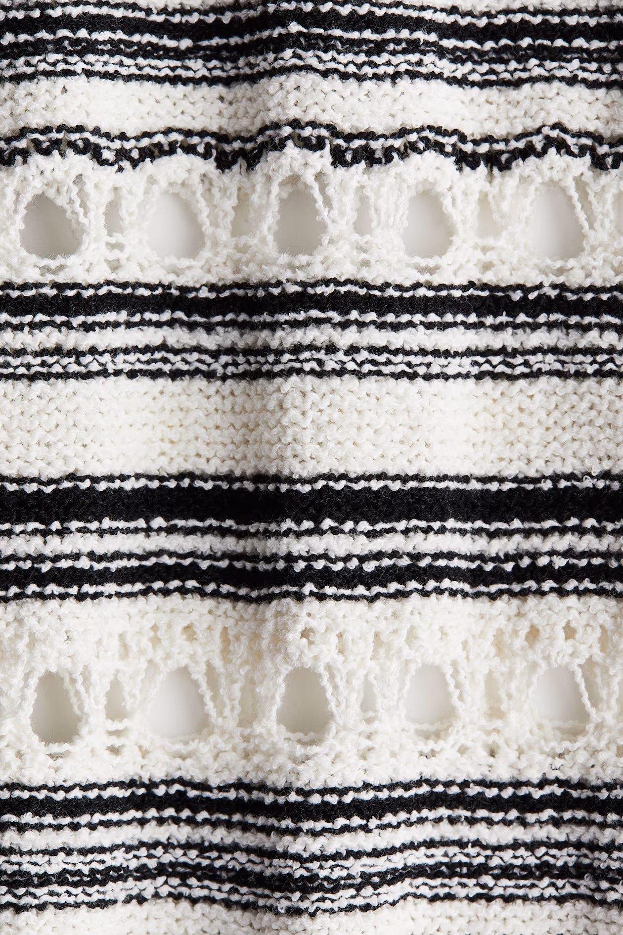 Calf-length dress in soft, purl-knit bouclé with hole-knit sections. Round neckline, long sleeves, and a straight-cut hem with high slit at one side.