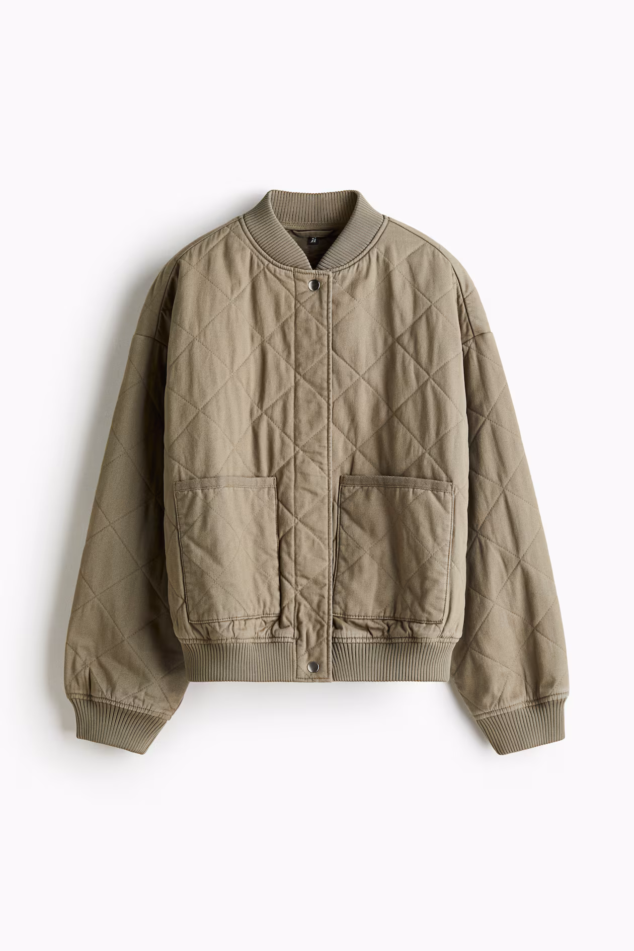 Oversized, lightly padded bomber jacket in quilted woven fabric. Low collar, snap fasteners at front, patch front pockets, and dropped shoulders. Ribbing at collar, cuffs, and hem. Lined.