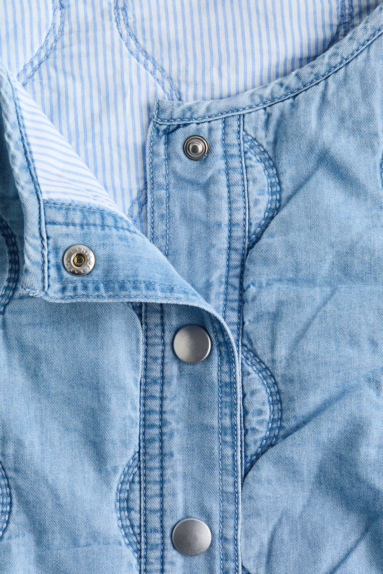 Lightly padded jacket in quilted, lightweight denim made from a cotton and lyocell blend. Round neckline, snap fasteners at front, and gently dropped shoulders. Covered elastic at cuffs and hem. Cotton lining.