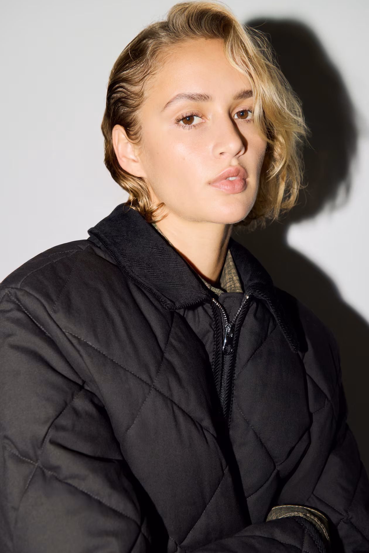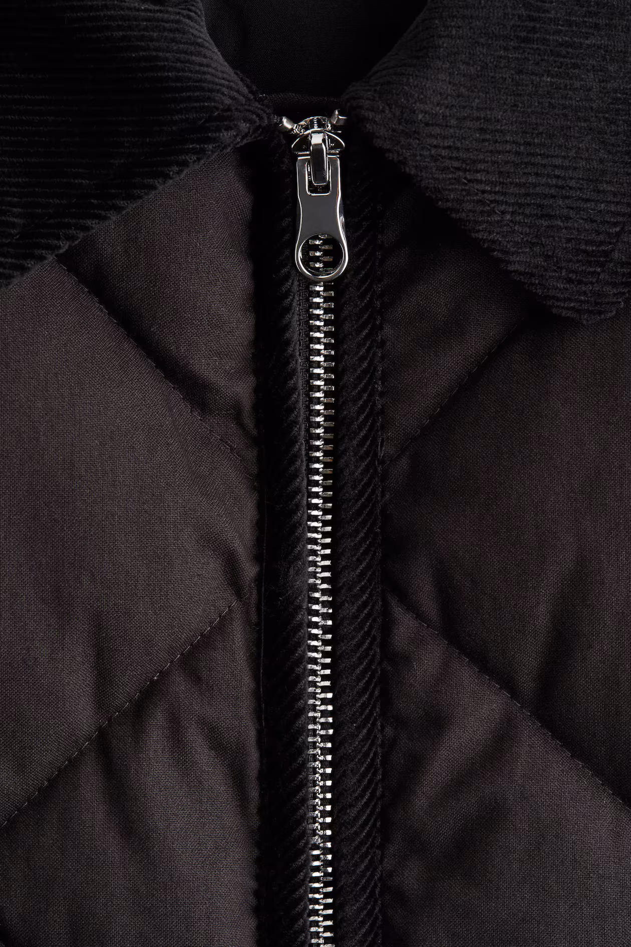 Lightly padded jacket in quilted cotton canvas. Collar in corduroy, zipper at front, and patch front pockets. Gently dropped shoulders and long sleeves. Lined.
