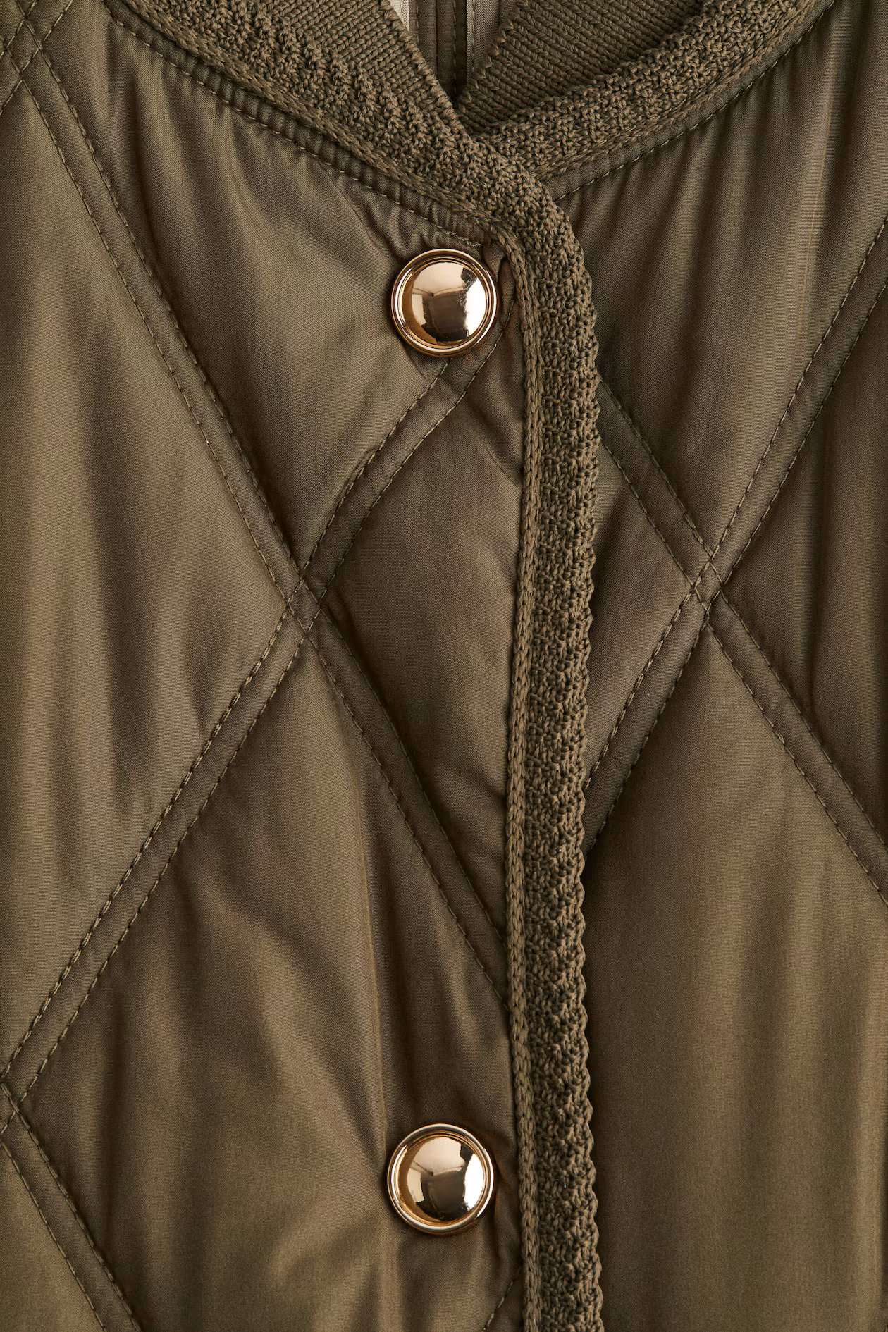 Jacket in diamond-quilted woven fabric with narrow binding throughout the design. Small, ribbed collar, snap fasteners at front, and welt side pockets. Straight-cut hem featuring rounded side vents with snap fastener. Lined.
