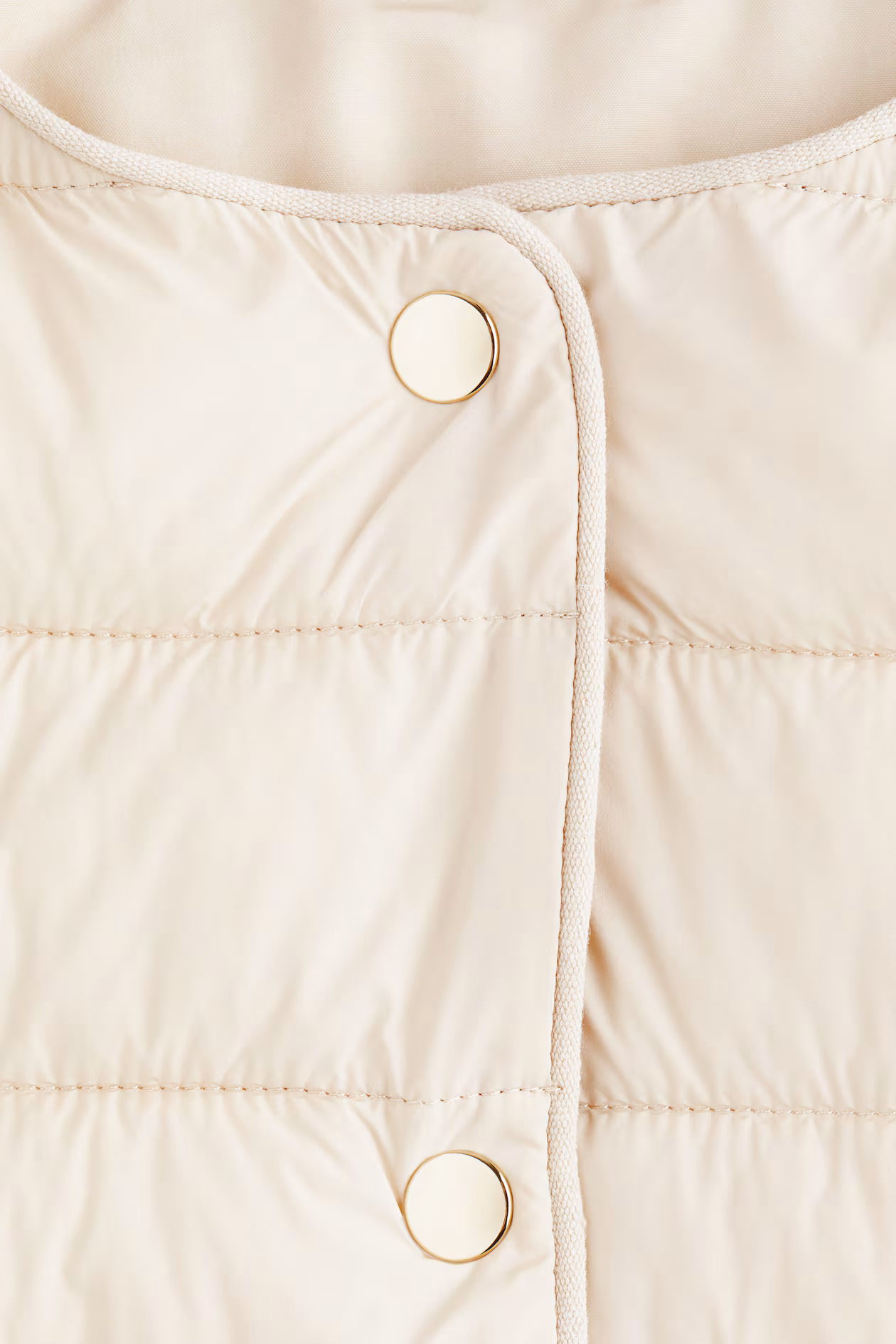 Lightly padded jacket in quilted nylon. Round neckline, snap fasteners at front, and discreet side pockets. Narrow elastic at cuffs. Lined.