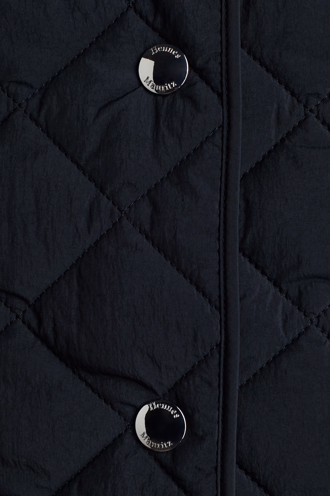 Vest in quilted woven fabric. Round neckline, snap fasteners at front, and patch front pockets. Unlined.