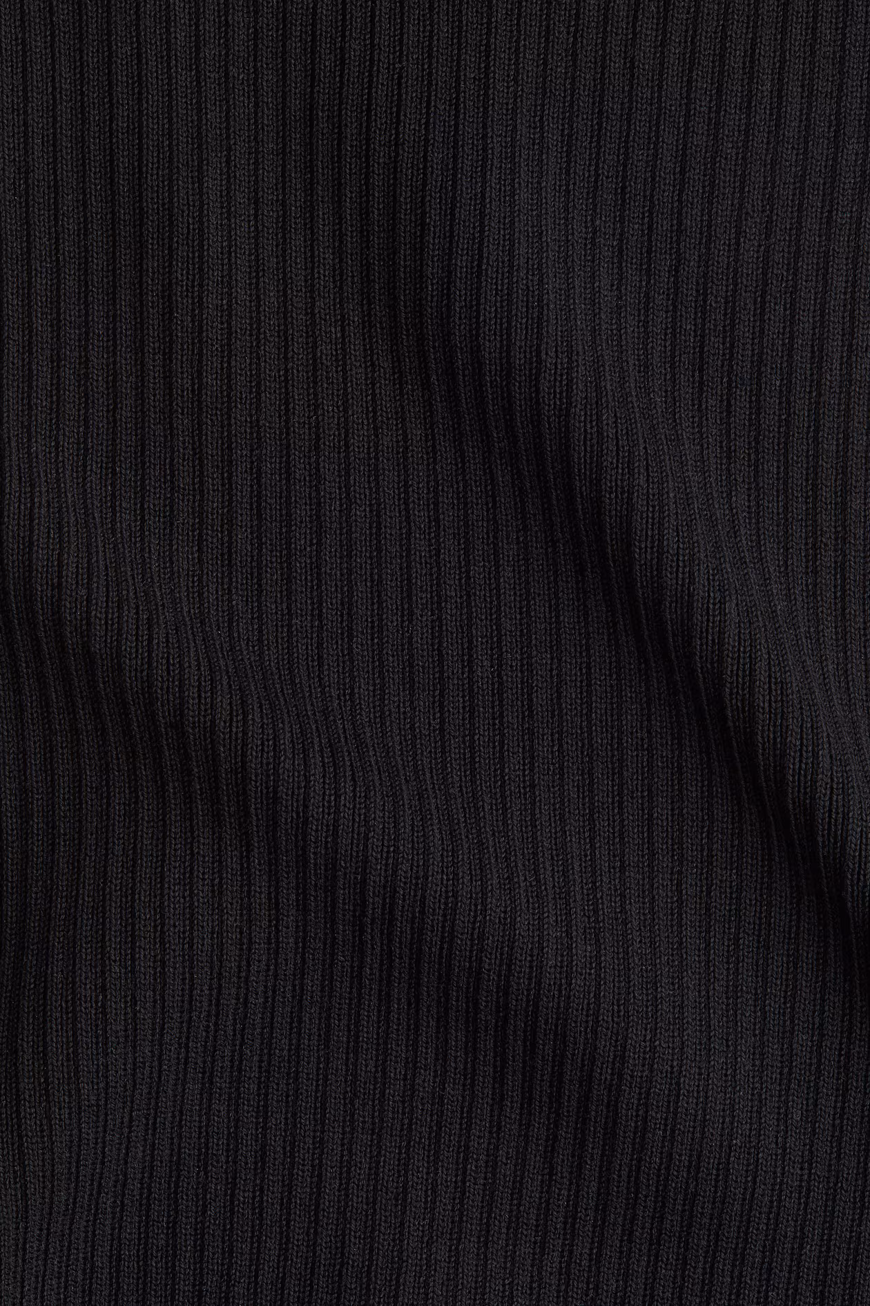 Short, fitted bandeau dress in a soft rib knit. Silicone trim inside upper edge.