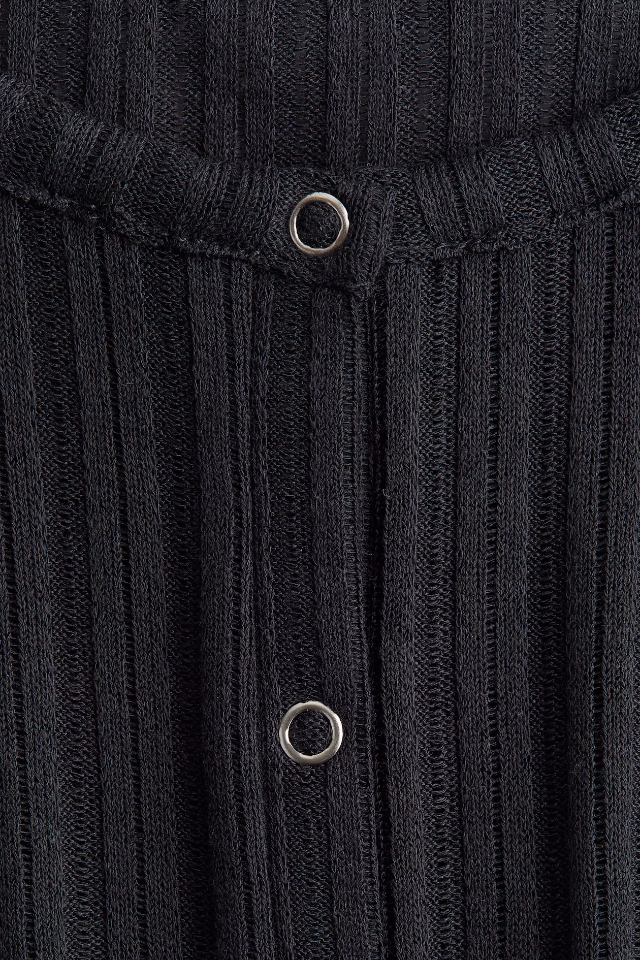 Fitted cardigan in a sheer rib knit. Round neckline, snap fasteners at front, and long sleeves. Overlocked edges at cuffs and hem.