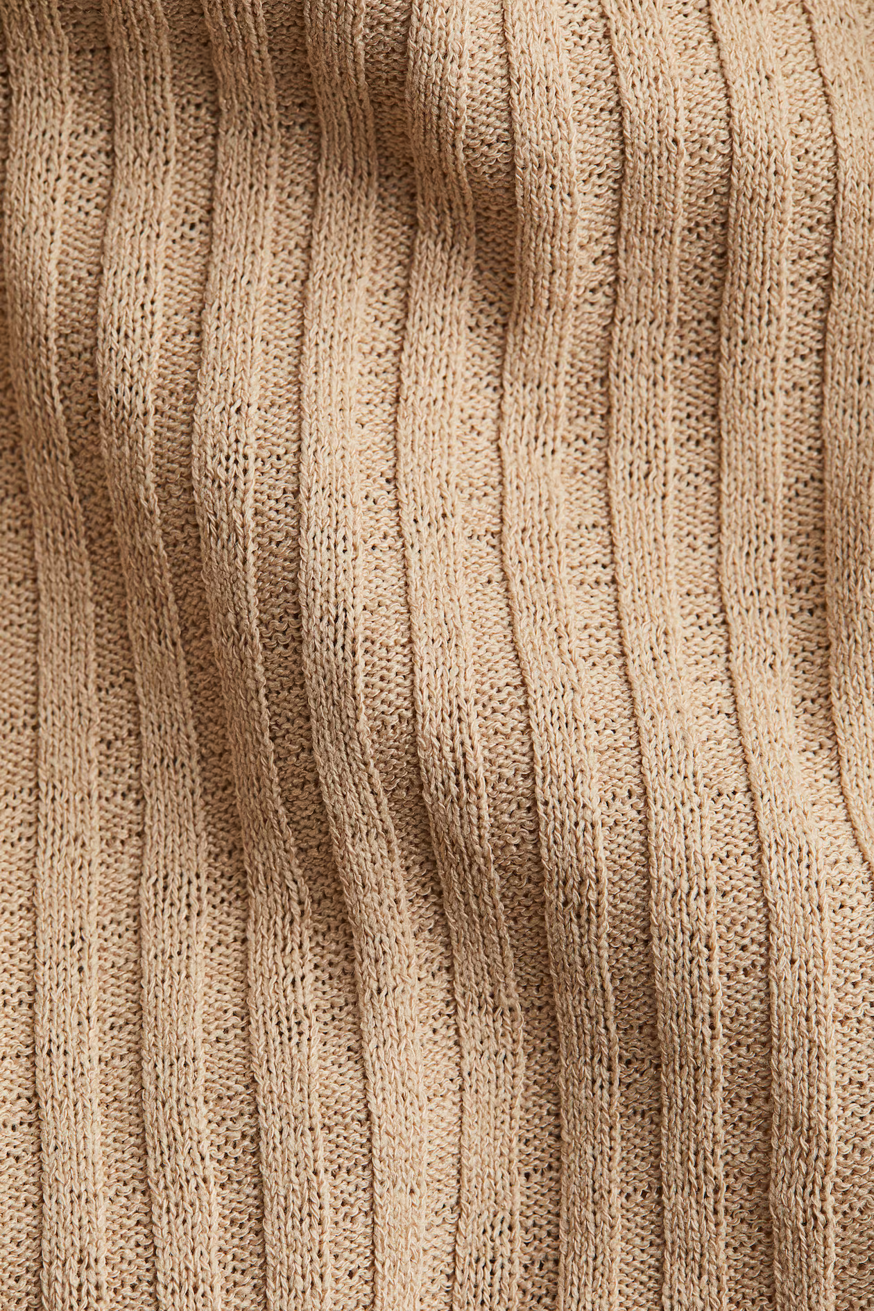 Fitted, sleeveless dress in a rib knit. Scoop neck at front and back and a straight hem with slit at back.