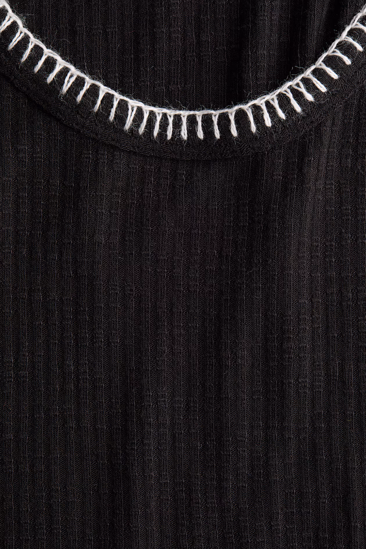 Short, sleeveless dress in a soft rib knit with a round neckline. Contrasting whipstitching at neckline and armholes.