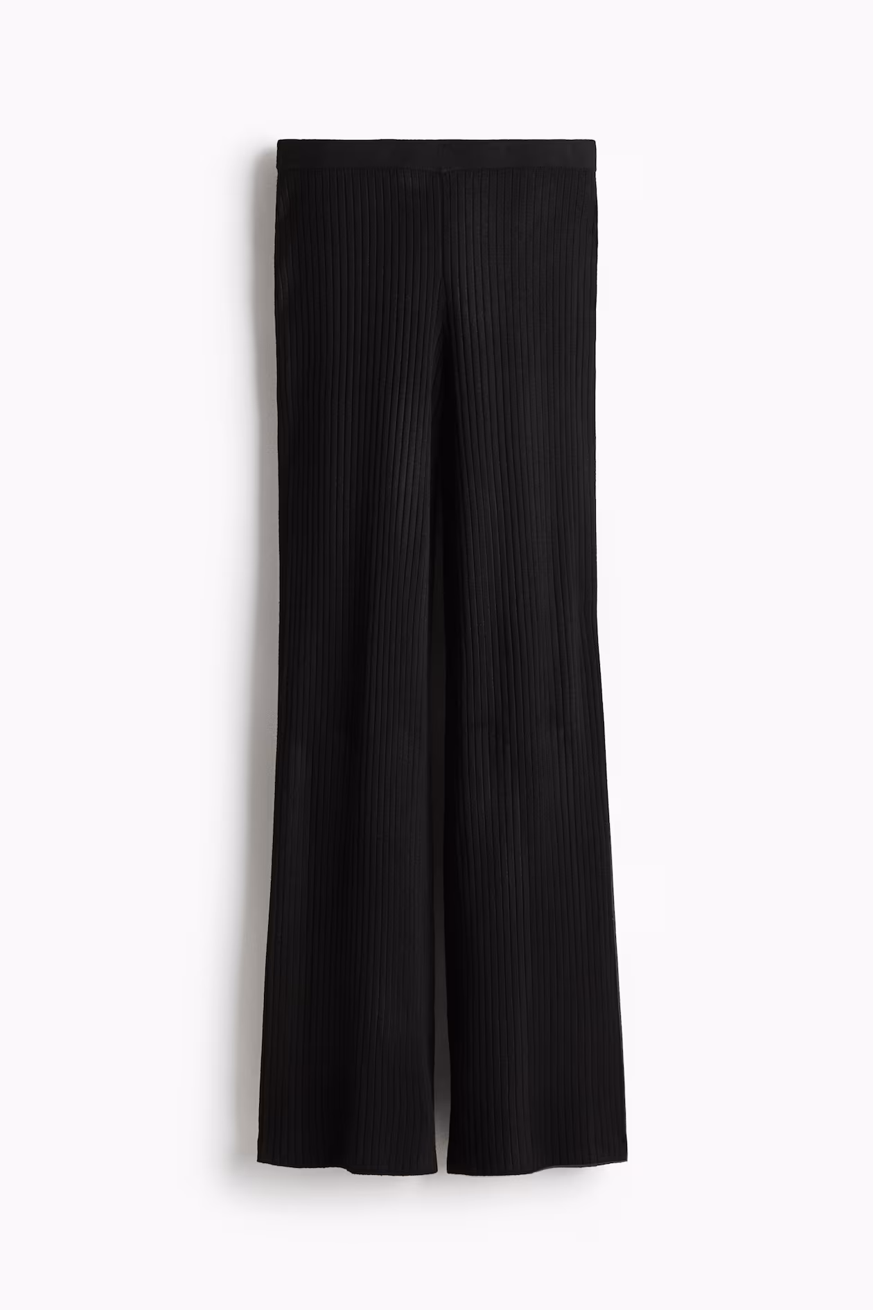 Pants in a rib-knit viscose blend. Elasticized waistband and straight legs with gently flared hems.