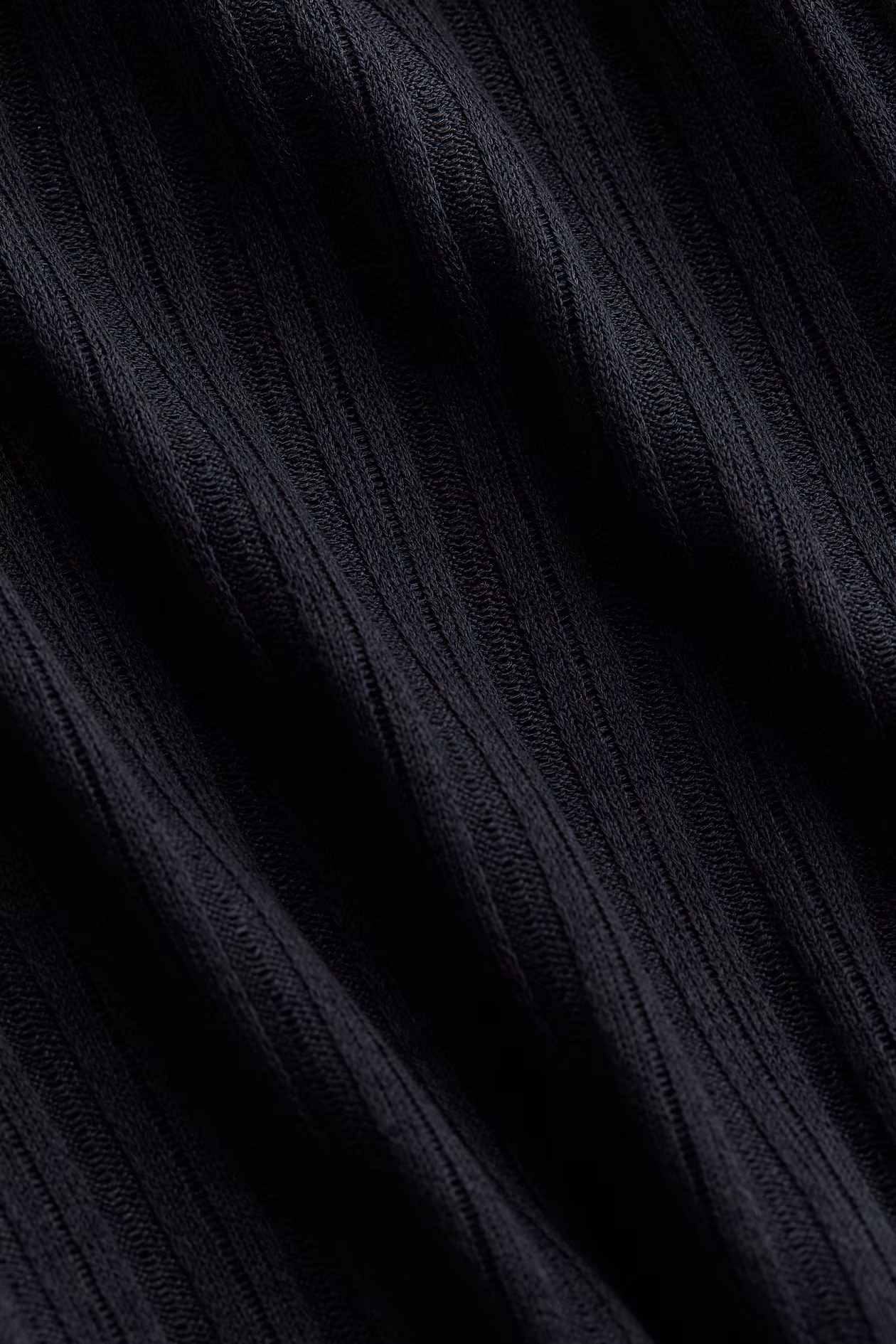 Fitted pants in a sheer rib knit. Elasticized waistband, straight legs, and gently flared hem with overlocked edge.