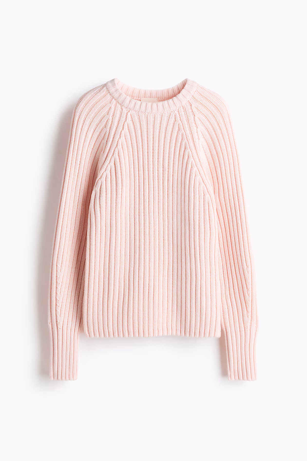 Soft, rib-knit sweater with a ribbed round neckline. Long sleeves with fully fashioned raglan seams.