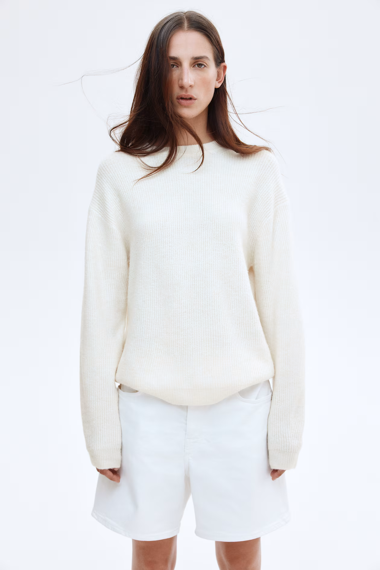 Loose-fit sweater in a soft rib knit. Round neckline, dropped shoulders, and long sleeves, tapered to cuffs.