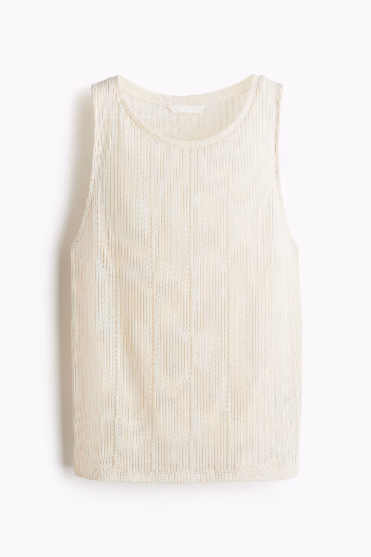 Loose-fit, tank top in a sheer rib knit. Round neckline and deep armholes.